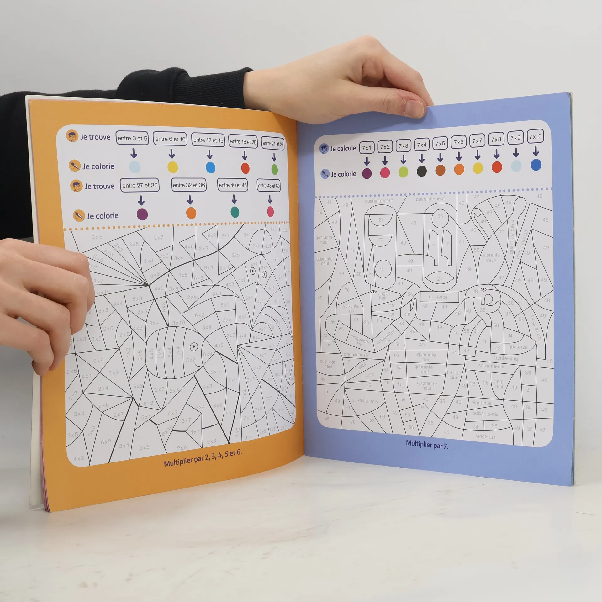L'enfant associe chacune des cases codées à une couleur précise pour faire apparaître le dessin. Une manière ludique de bien apprendre ses tables de multiplications.
