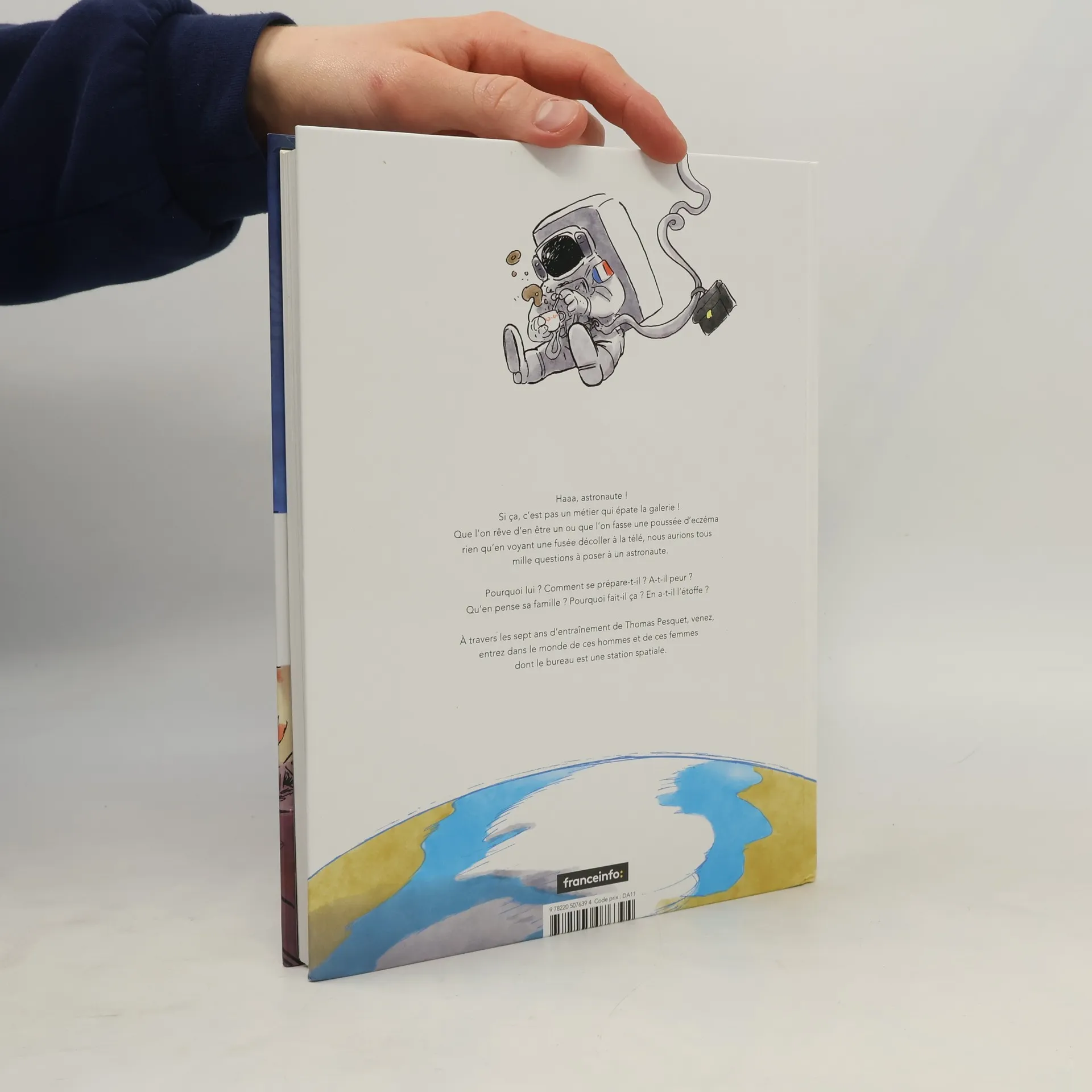 Haaa, astronaute ! Si ça, c'est pas un métier qui épate la galerie ! Que l'on rêve d'en être un ou que l'on fasse une poussée d'eczéma rien qu'en voyant une fusée décoller à la télé, nous aurions tous mille questions à poser à un astronaute. Pourquoi lui ? Comment se prépare-t-il ? A-t-il peur ? Qu'en pense sa famille ? Pourquoi fait-il ça ? En a-t-il l'étoffe ? À travers les sept ans d'entraînement de Thomas Pesquet, venez, entrez dans le monde de ces hommes et de ces femmes dont le bureau est une station spatiale.