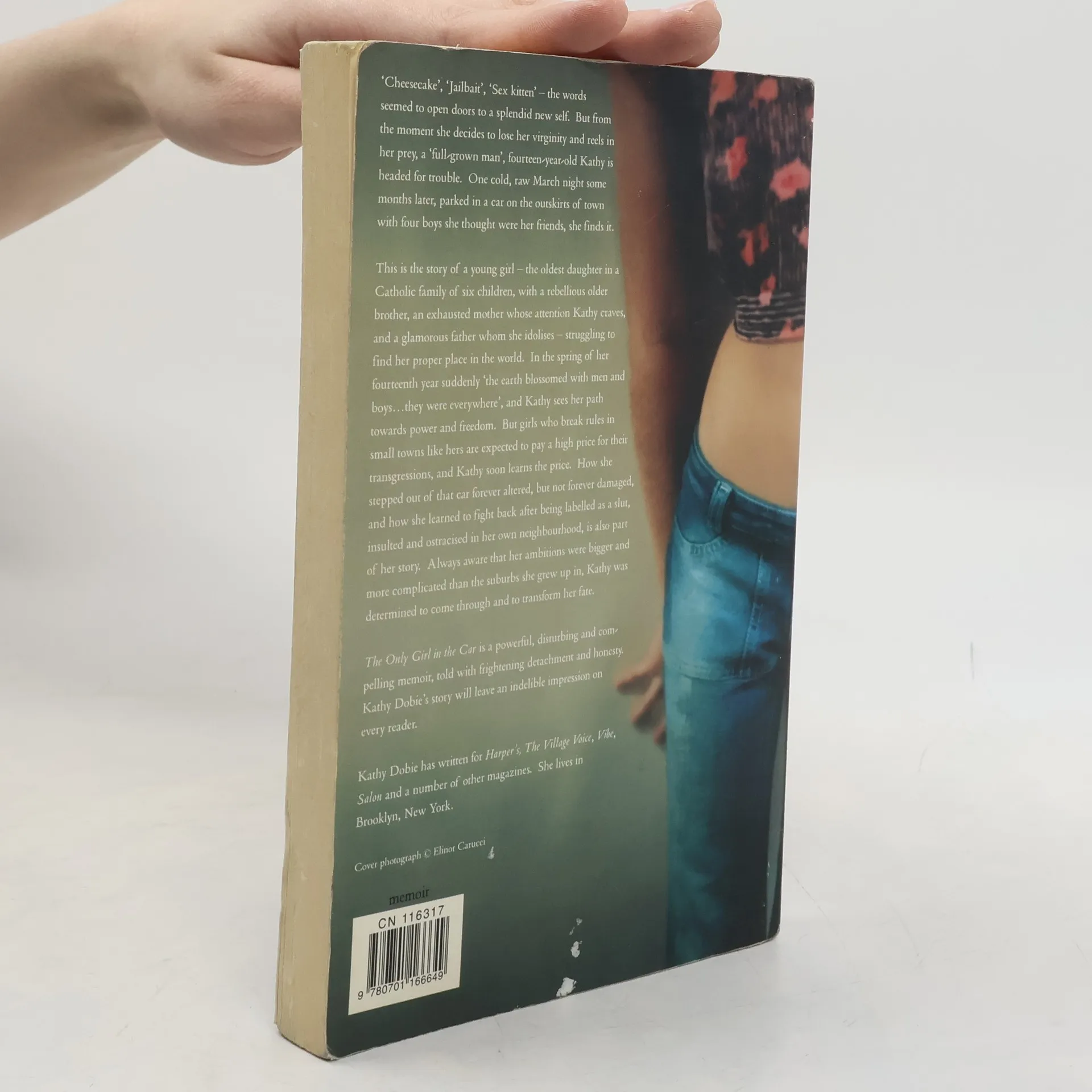 Bookworm and dreamer, Kathy was a young girl with a tender heart, an adventurer’s spirit, and a child’s terrible confusion about her proper place in the world. As the oldest daughter in a family of six children, she seemed trapped in her role as Big Sister and Mommy’s Helper. Then, one day, teetering on the brink of adolescence, hormones surging, she heard someone call her “cheesecake,” and suddenly saw her path. “Cheesecake, jailbait, sex kitten”--the very words seemed to be “doors opening” to a splendid new self. But from the moment she decides to lose her virginity and reels in her prey, a “full-grown man,” fourteen-year-old Kathy is headed for trouble. One cold, raw March night some months later, parked in a car with four boys on the outskirts of her small suburban town, she finds it. Though she could never have foreseen the outcome of that night, the “boys in the car could just as well have been Gypsies foretelling my future,” she writes. Girls who break the rules in small towns like the one she lived in are expected to pay a very high price for their transgressions--and she did. And yet...this young girl, as scrappy a protagonist as any in our literature, manages to transform her fate. The story of how she came to be in that car, and how she stepped out of it forever altered, to be sure, yet not forever damaged, is the theme of this extraordinary coming-of-age tale.