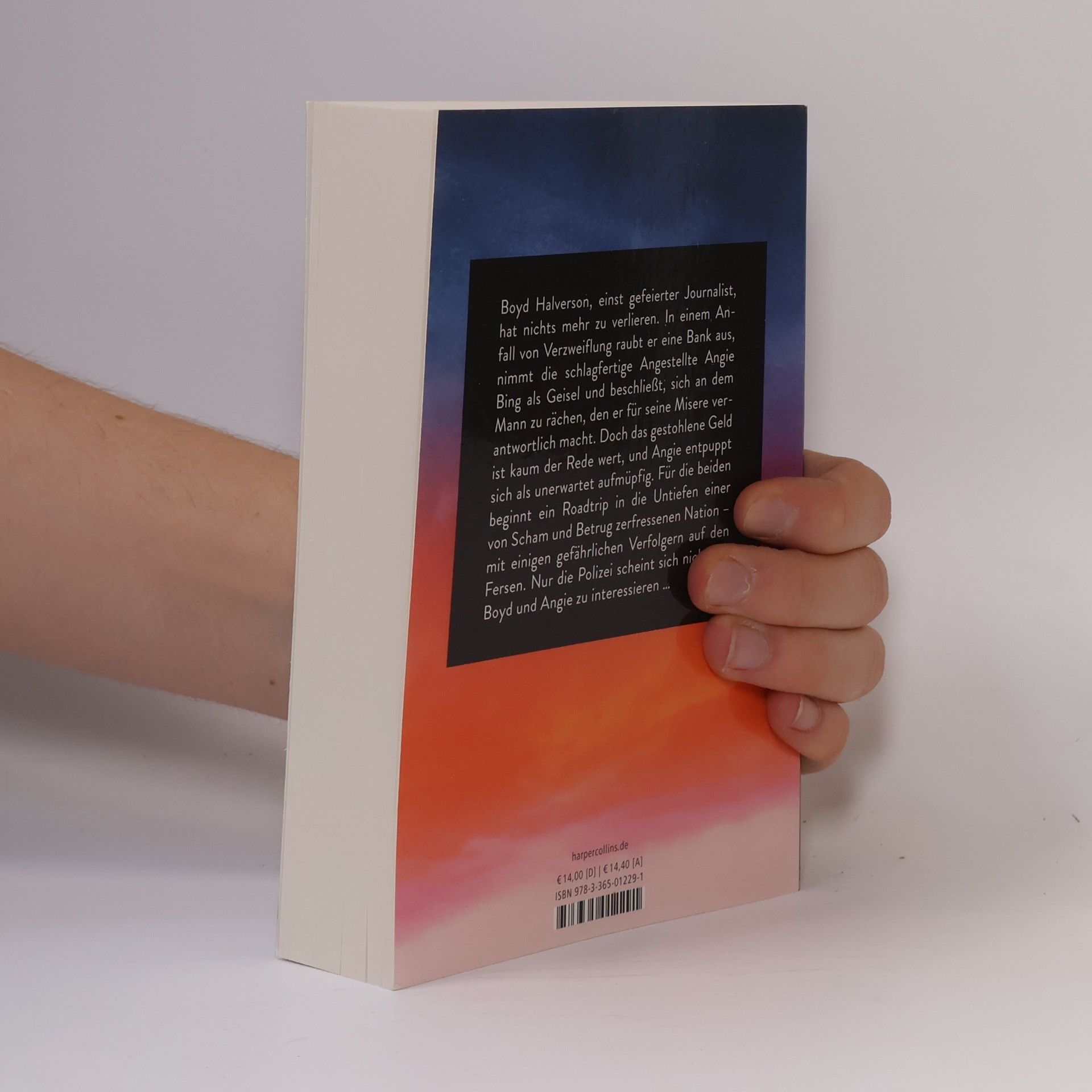 Einst Star-Journalist, lässt den in Ungnade gefallenen Boyd Halverson seine Vergangenheit einfach nicht los, während ihn die Gegenwart zermürbt. Also beschließt er eines Tages, die lokale Bank auszurauben, eine Geisel zu nehmen und abzuhauen, um eine Rechnung zu begleichen – mit dem Mann, dem er die Schuld an seinem verpfuschten Leben gibt. Doch das gestohlene Geld übersteigt nicht mal Boyds eigene Rücklagen, und Angie Bing, die Bankangestellte, mit der er immer ganz gerne geflirtet hat, stellt sich als ganz schön aufmüpfige Geisel heraus. Für die beiden beginnt ein Roadtrip in die Untiefen einer von Scham und Betrug zerfressenen Nation – mit einigen gefährlichen Verfolgern auf den Fersen. Nur die Polizei scheint sich nicht für Boyd und Angie zu interessieren … »Durchdringend und messerscharf.« Haruki Murakami