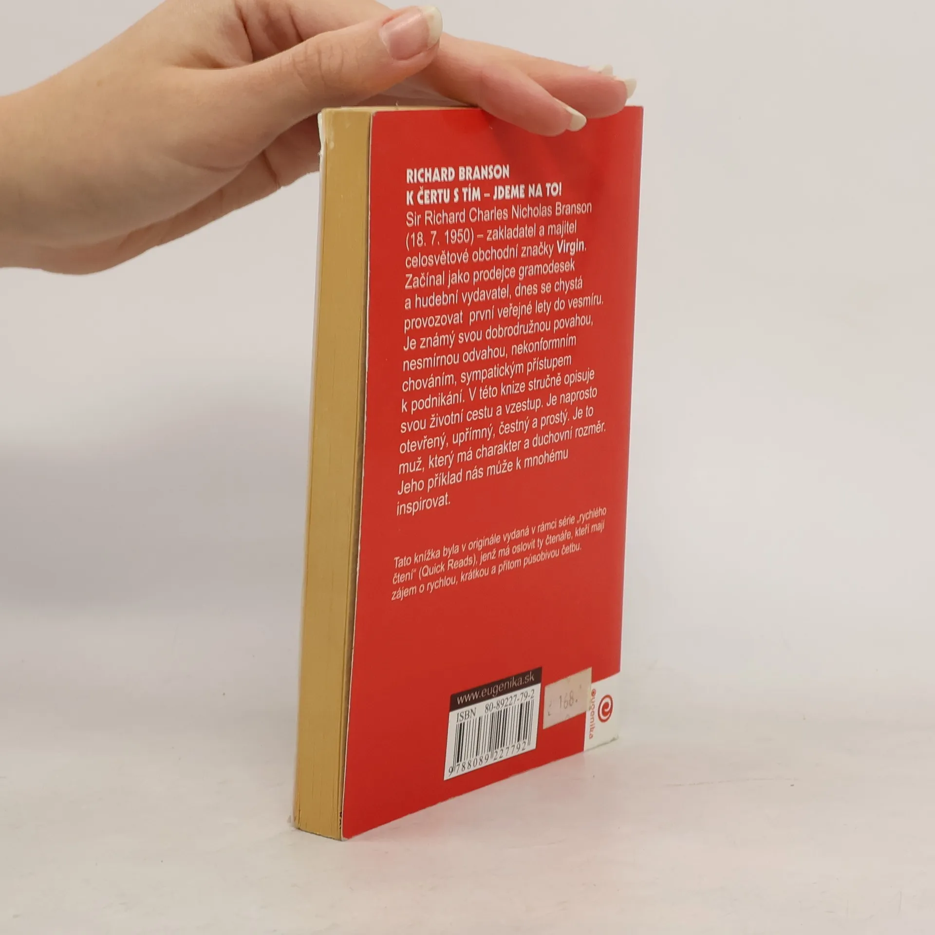 Autor je charizmatický zakladatel a majitel celosvětové obchodní značky Virgin. Začínal jako prodejce gramodesek a hudební vydavatel, dnes se chystá provozovat první veřejné lety do vesmíru. Je známý svou dobrodružnou povahou, nesmírnou odvahou, nekonformním chováním, sympatickým přístupem k podnikání. V této knize stručně opisuje svou životní cestu a vzestup.