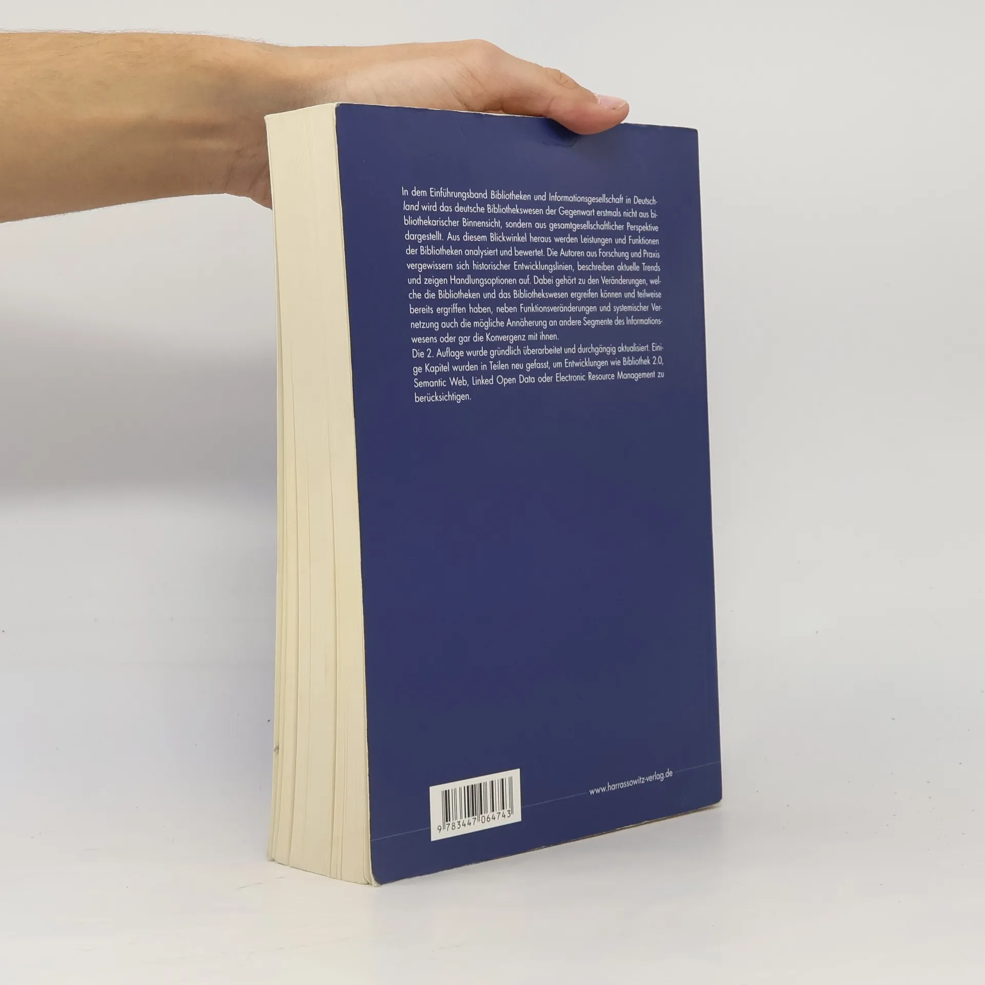 In der Einführung „Bibliotheken und Informationsgesellschaft in Deutschland“ wird das deutsche Bibliothekswesen aus einer gesamtgesellschaftlichen Perspektive betrachtet. Diese Analyse bewertet die Leistungen und Funktionen der Bibliotheken, während Autoren aus Forschung und Praxis historische Entwicklungen, aktuelle Trends und Handlungsoptionen beleuchten. Veränderungen im Bibliothekswesen umfassen nicht nur Funktionsanpassungen und systemische Vernetzungen, sondern auch die Annäherung an andere Informationsbereiche und deren mögliche Konvergenz. Die überarbeitete 2. Auflage berücksichtigt Entwicklungen wie Bibliothek 2.0, Semantic Web, Linked Open Data und Electronic Resource Management. Der Inhalt umfasst historische und soziologische Entwicklungen in Bibliothek, Archiv, Dokumentation und Medien, strukturelle sowie technische Entwicklungen, das Übergang von segmentären zu funktional differenzierten Bibliothekssystemen, hybride, digitale und virtuelle Bibliotheken, verschiedene Bibliothekstypen, Netzwerke und Kooperationen, Normen und Standards, Informationsdienstleistungen, bibliothekarisches Wissensmanagement, Bibliotheksmanagement sowie Perspektiven der Bibliothek, einschließlich Chancen und Restriktionen.