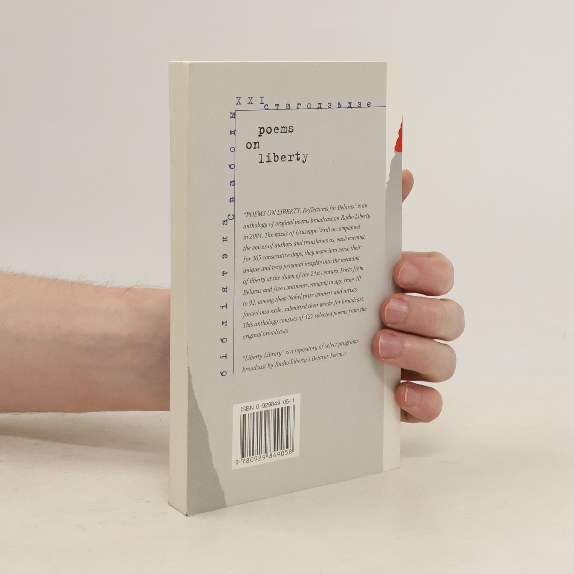"Poems on Liberty: Reflections for Belarus" is an anthology of original poems broadcast on Radio Liberty in 2001. The music of Giuseppe Verdi accompanied the voices of authors and translators as, each evening for 365 consecutive days, they wove into verse their unique and very personal insights into the meaning of liberty at the dawn of the 21st century. Poets from Belarus and five continents, ranging in age from 10 to 92, among them Nobel prize winners and artists forced into exile, submitted their works for broadcast. This anthology consists of 122 selected poems from the original broadcasts. "Liberty Library" is a repository of select programs broadcast by Radio Free Europe/Radio Liberty's Belarus Service.