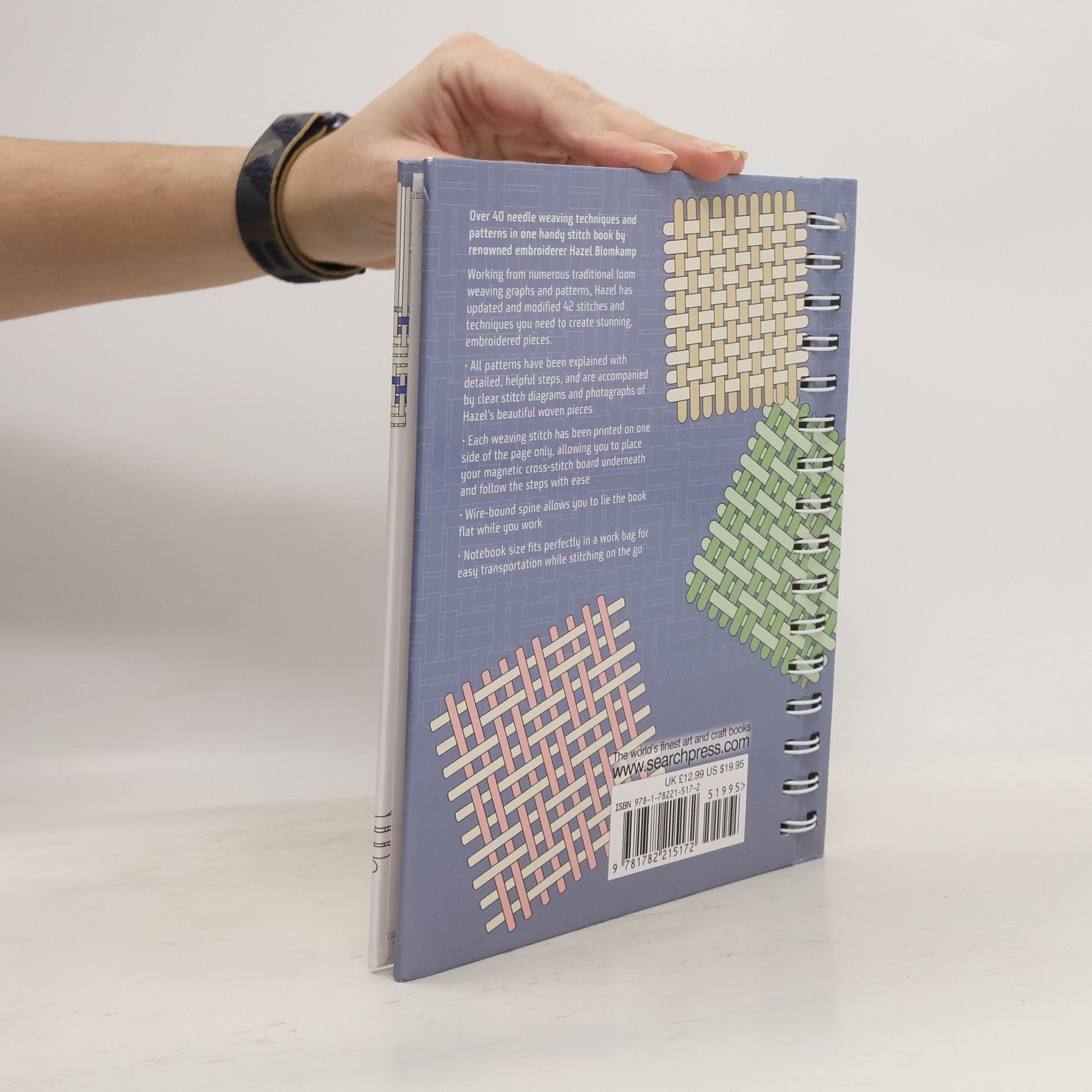 Working from loom weaving graphs and patterns, Hazel Blomkamp has modified and documented 42 different needle weaving techniques and patterns in this handy stitch book. The book begins with basic guidance on needle weaving techniques, based on a single weaving method which Hazel has broken down into easy steps. 42 needle weaving patterns are then described, each with a clear diagram and step-by-step instructions, and a photograph of one of hazel's beautiful piece to provide inspiration. All the stitches have been detailed on one side of the page only, allowing you to place your magnetic cross-stitch board underneath. You can then use the magnetic rulers that come with the board to mark the row that you are working on, making the instructions easier to follow. The book is wire-bound, allowing the pages to lie flat while you work, and the book's notebook-size fits perfectly in a workbag for easy transportation while stitching on the go. With all the stitches needed for needle weaving embroidery at their fingertips, both new and experienced embroiderers will find inspiration from this invaluable resource.