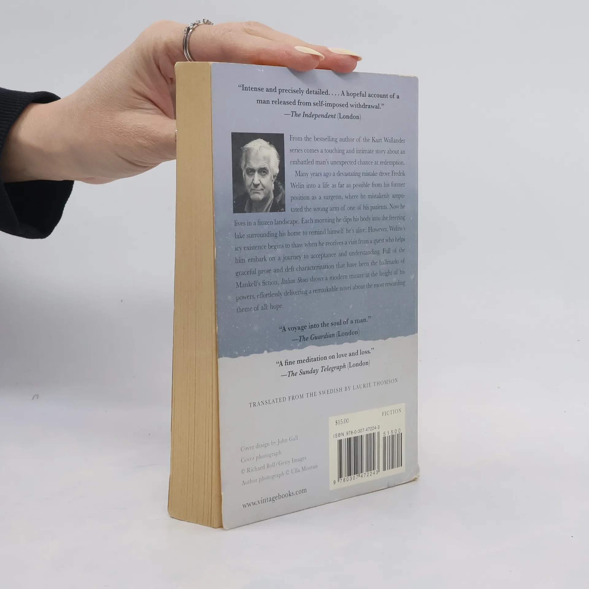 From the bestselling author of the Kurt Wallander series comes a touching and intimate story about an embattled man’s unexpected chance at redemption. Many years ago a devastating mistake drove Fredrik Welin into a life as far as possible from his former position as a surgeon, where he mistakenly amputated the wrong arm of one of his patients. Now he lives in a frozen landscape. Each morning he dips his body into the freezing lake surrounding his home to remind himself he’s alive. However, Welins’s icy existence begins to thaw when he receives a visit from a guest who helps him embark on a journey to acceptance and understanding. Full of the graceful prose and deft characterization that have been the hallmarks of Mankell’s prose, Italian Shoes shows a modern master at the height of his powers, effortlessly delivering a remarkable novel about the most rewarding theme of all: hope.