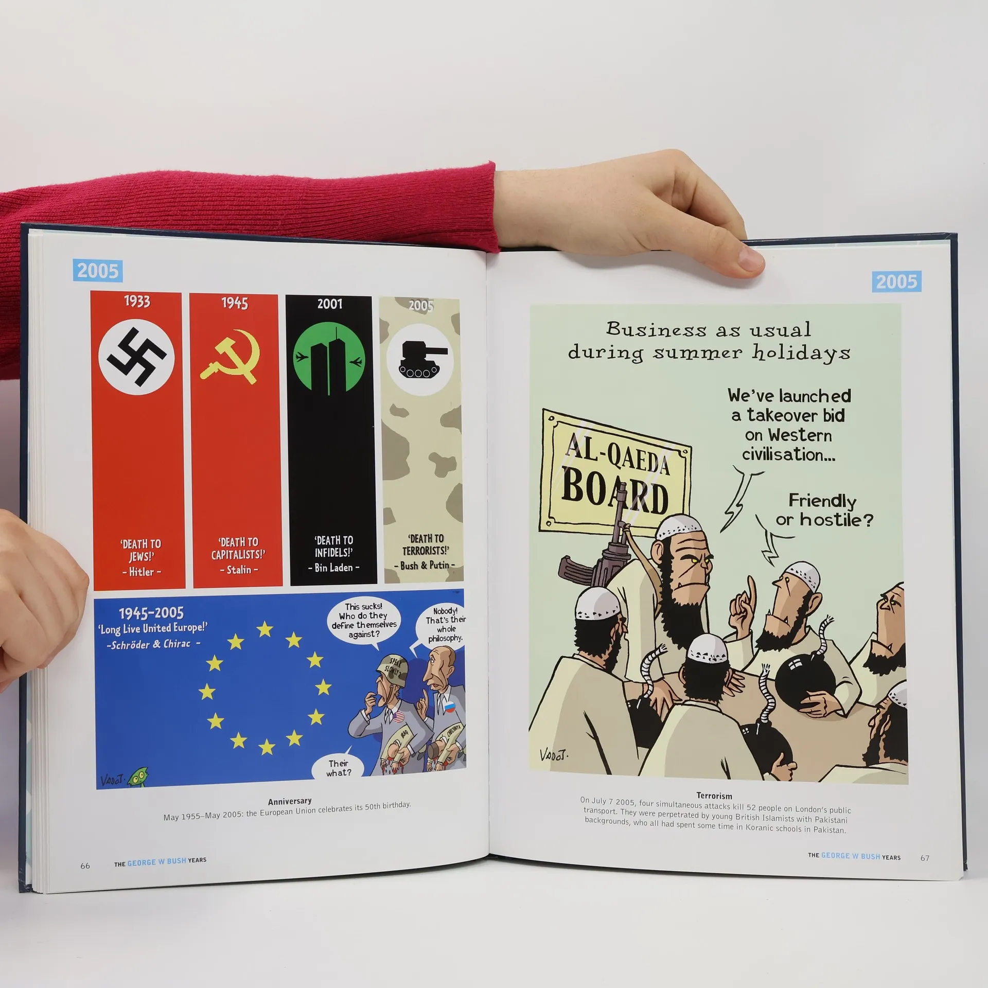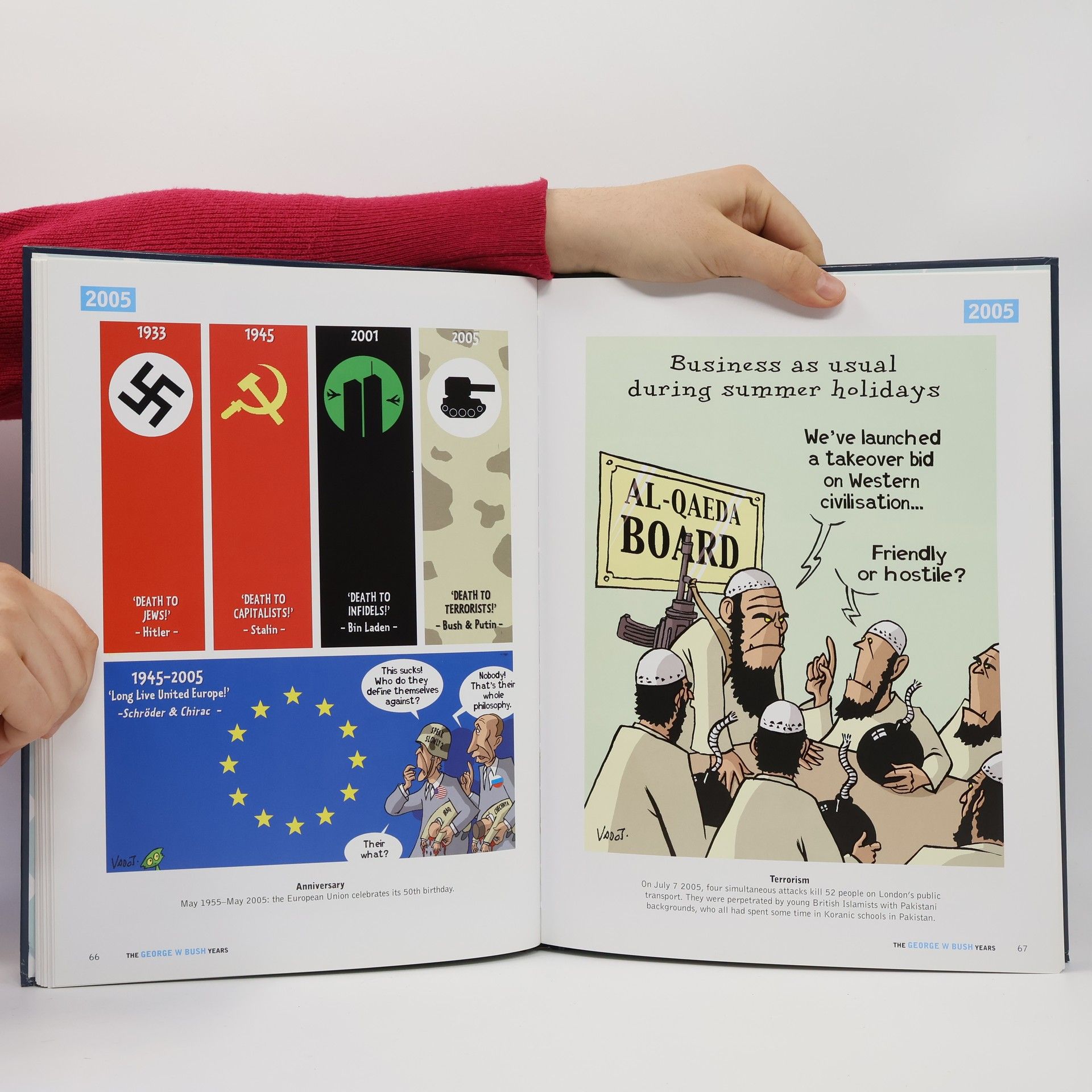 George Walker Bush mistook Slovakia for Slovenia, thought the inhabitants of Greece were called Greekians and still doesn't know what a weapon of mass destruction really looks like, but he's eager to fill the gaps in his general knowledge during his third term. What?? He can't run for a third term?? What a pity. In the George W. Bush Years cartoonist Nicolas Vadot has drawn his take on George Dubbya in a serious of hilarious cartoons that track the years of one of the most controversial American presidents ever.