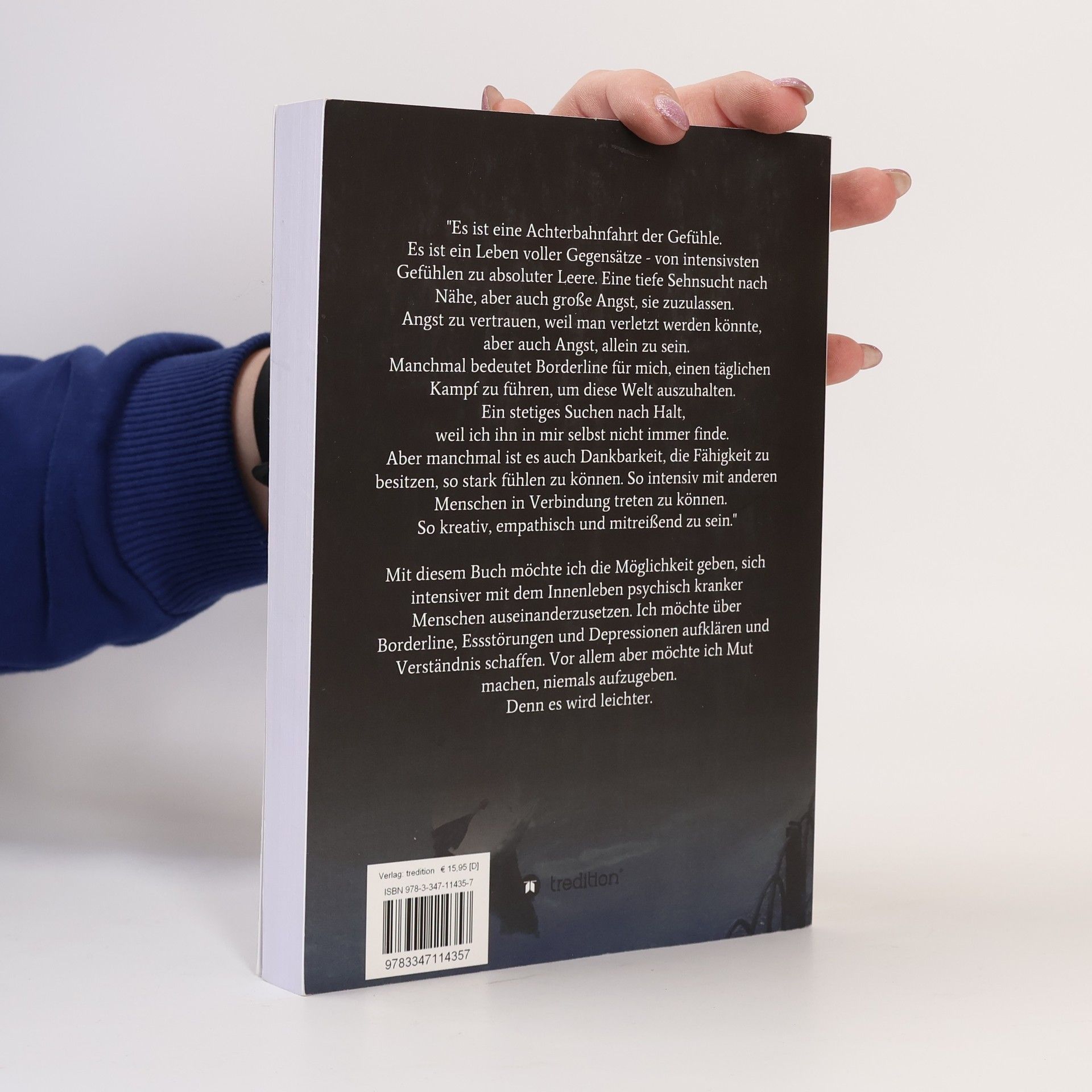 Das Buch von Bettina Kilb beschreibt die emotionalen Achterbahnfahrten von Menschen mit Borderline, Essstörungen und Depressionen. Es bietet Einblicke in deren Innenleben und fördert Verständnis. Kilb ermutigt Betroffene, sich selbst zu akzeptieren und niemals aufzugeben, da das Leben trotz Herausforderungen viel Schönes bereithält.