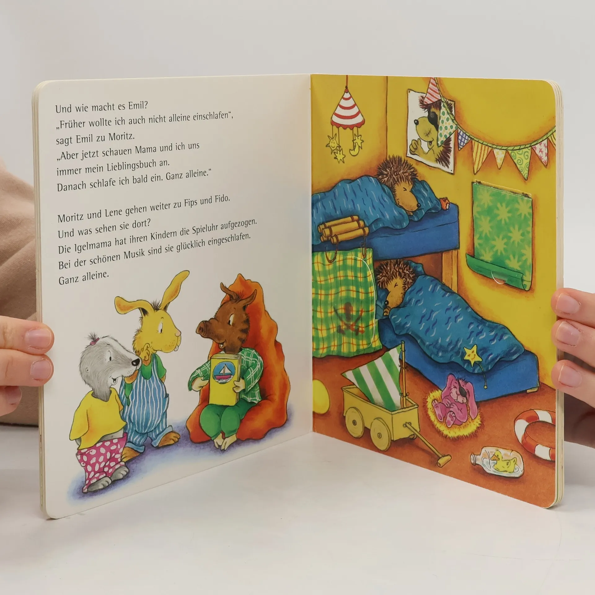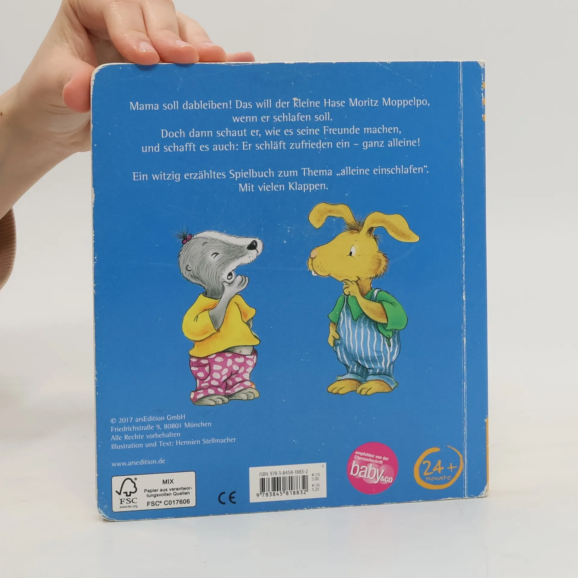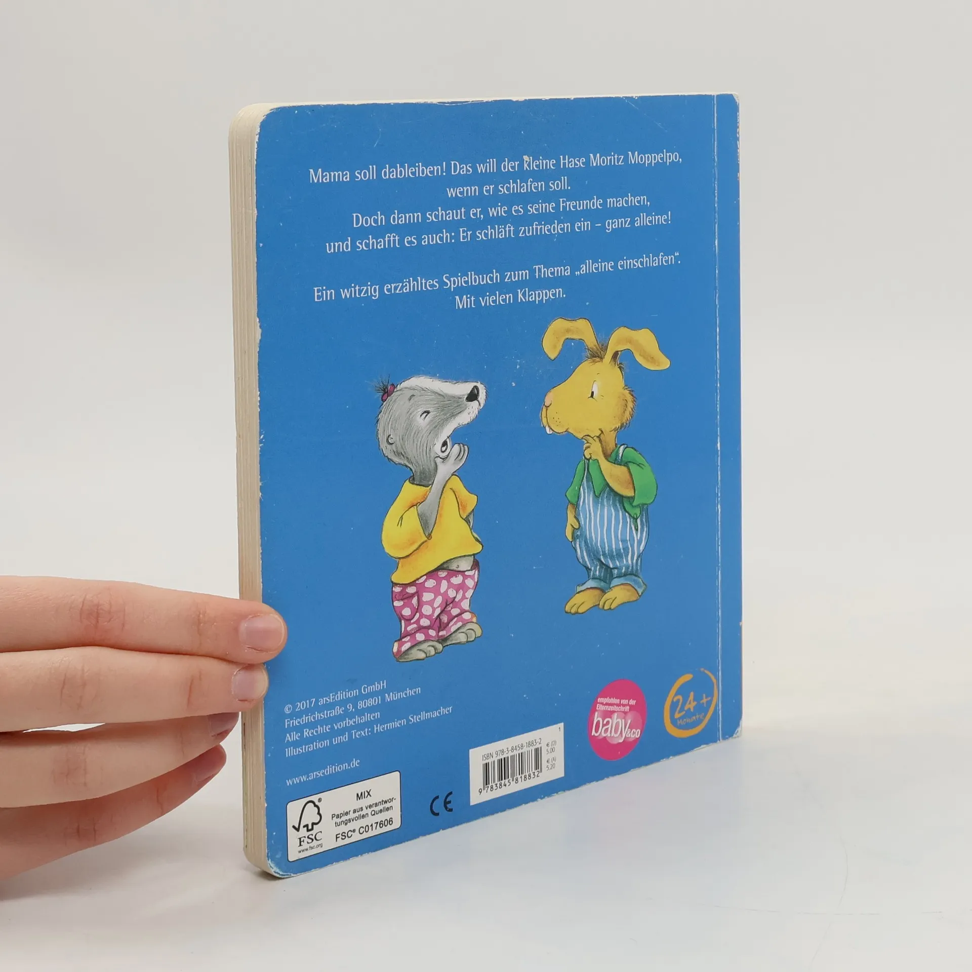 Mama soll dabeibleiben! Das will der kleine Hase Moritz, wenn er schlafen soll. Doch dann schaut er, wie es seine Freunde machen, und schafft es auch: Er schläft zufrieden ein - ganz alleine! Ein witzig erzähltes Spielbuch zum Thema »alleine einschlafen«. Mit vielen Klappen.