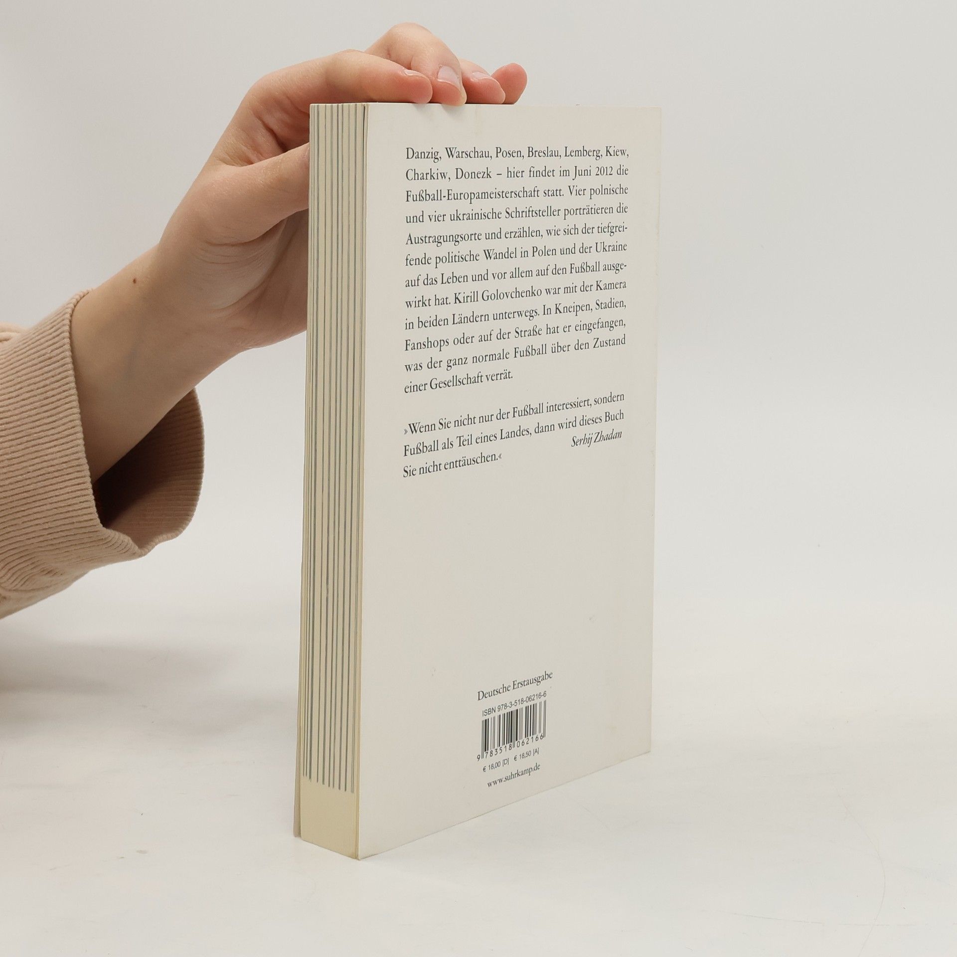 Von der Donbas Arena zum Stadion Miejski in Breslau – acht Schriftsteller unterwegs zu den Austragungsorten der Euro 2012. Wie Ufos sehen sie aus, die gigantischen Stadien, die im hintersten Osten der Ukraine von milliardenschweren Oligarchen errichtet werden. Hier liegt die Machtbasis von Präsident Janukowitsch, der das Land derzeit in die autoritäre Vergangenheit zurückkatapultiert. Die Fußball-Europameisterschaft 2012 wird die Aufmerksamkeit der Weltöffentlichkeit auf Länder richten, die sich in einem tiefgreifenden Transformationsprozeß befinden. Vier polnische und vier ukrainische Autoren porträtieren die acht Austragungsorte − Breslau, Danzig, Posen, Warschau, Lemberg, Kiew, Charkiw, Donezk − und erzählen, wie sich dieser dramatische Wandel auf ihr Leben, auf den Fußball und auf die Städte ausgewirkt hat, in denen sie zu Hause sind.