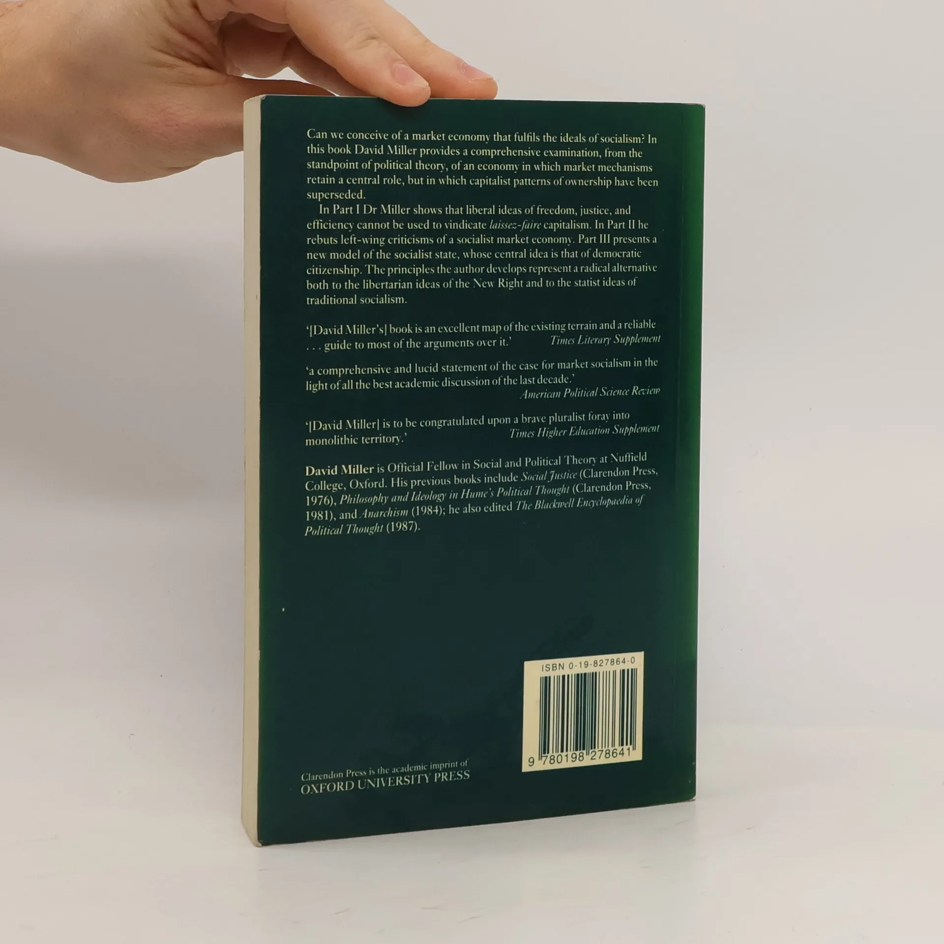 David Miller makes a comprehensive analysis of an economy in which market mechanisms retain a central role, but in which capitalist patterns of ownership have been superceded. He provides a clear, coherent statement of the theoretical basis of market socialism, and justifies it as a viable political option.