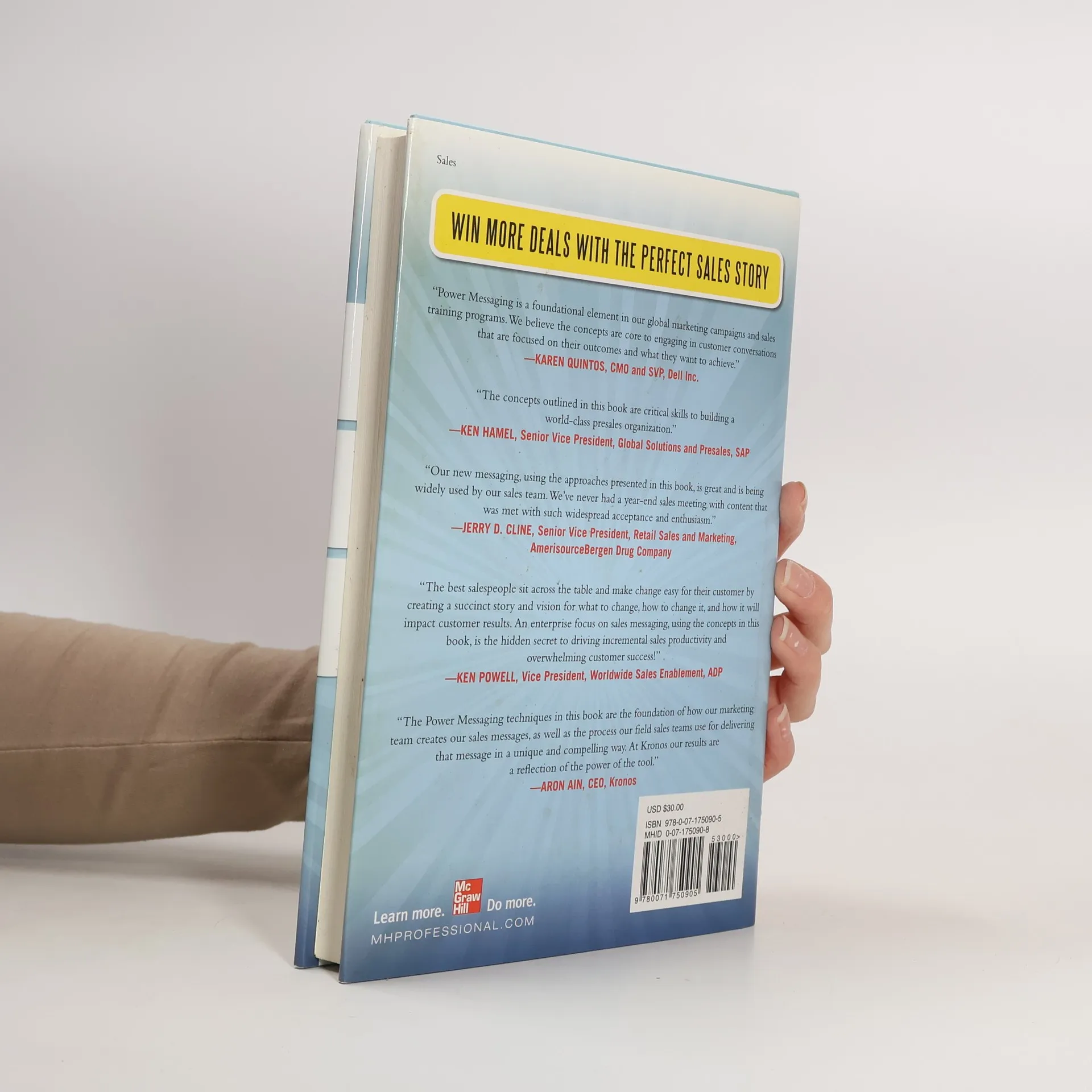 Win more deals with the perfect sales story! "Power Messaging is a foundational element in our global marketing campaigns and sales training programs. We believe the concepts are core to engaging in customer conversations that are focused on their outcomes and what they want to achieve." --Karen Quintos, CMO and SVP, Dell Inc."The concepts outlined in this book are critical skills to building a world-class presales organization." --Ken Hamel, Senior Vice President, Global Solutions and Presales, SAP"Our new messaging, using the approaches presented in this book, is great and is being widely used by our sales team. We've never had a year end sales meeting with content that was met with such widespread acceptance and enthusiasm." --Jerry D. Cline, Senior Vice President, Retail Sales and Marketing, AmerisourceBergen Drug Company"The best salespeople sit across the table and make change easy for their customer by creating a succinct story and vision for what to change, how to change it, and how it will impact customer results. An enterprise focus on sales messaging, using the concepts in this book, is the hidden secret to driving incremental sales productivity and overwhelming customer success!" --Ken Powell, Vice President, Worldwide Sales Enablement, ADP"The Power Messaging techniques in this book are the foundation of how our marketing team creates our sales messages, as well as the process our field sales teams use for delivering that message in a unique and compelling way. At Kronos our results are a reflection of the power of the tool." --Aron Ain, CEO, KronosAbout the Book:In today's highly competitive world of complex sales, commoditization of your brand is one of the greatest dangers. You must differentiate yourself from the competition--or you will lose out. And the way to do that is through customer engagement. Rather than sell your own corporate story and brand message, you need to tell customers their story--the one in which they are the heroes and they achieve success.Erik Peterson and Tim Riesterer have been developing and honing their Power Messaging sales technique for more than 20 years, and now they reveal all their secrets in "Conversations That Win the Complex Sale."Presenting a catalog of facts or playing 20 questions with prospective customers is the surest way to lose the sale. Peterson and Riesterer provide the tools you need to recraft your message into a compelling story that wins more deals.With "Conversations That Win the Complex Sale," you'll learn how to: Differentiate yourself from the competition by finding your "Value Wedge" Avoid parity in your value propositions by creating "Power Positions" Create a message that can literally double the number of deals you close Spike customer attention and create "Wow" in your conversations Prove all your claims without resorting to lists of boring facts and statisticsYour competitors are out there telling their own corporate story--a story customers "don't" want to hear. Now is the time to seize the moment. This book is the one and only source you need to reframe your sales story and turn the tables on the competition by fully engaging their would-be customers."Conversations That Win the Complex Sale" helps you create and deliver messages that customers care about, giving your brand the clear edge in today's crowded markets.