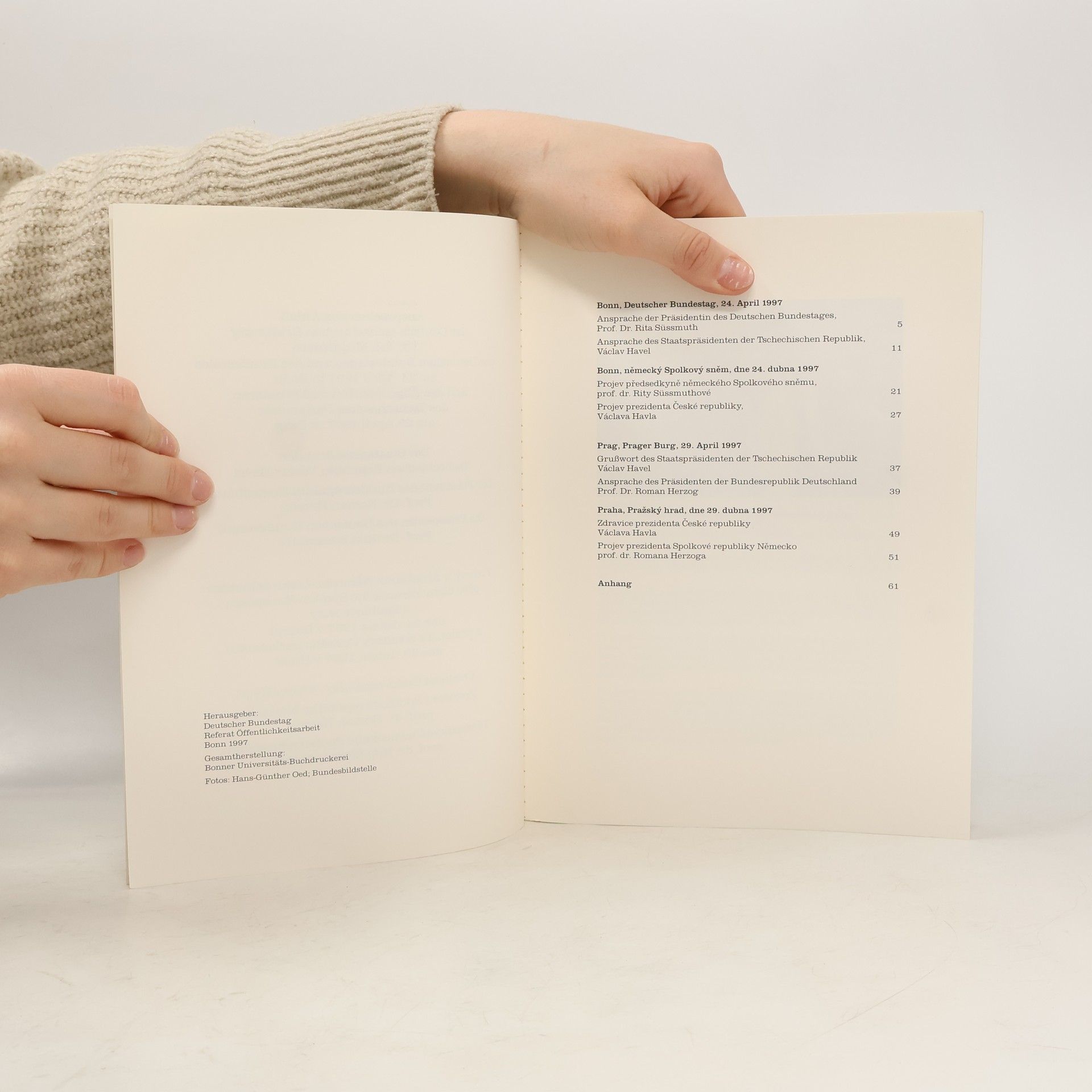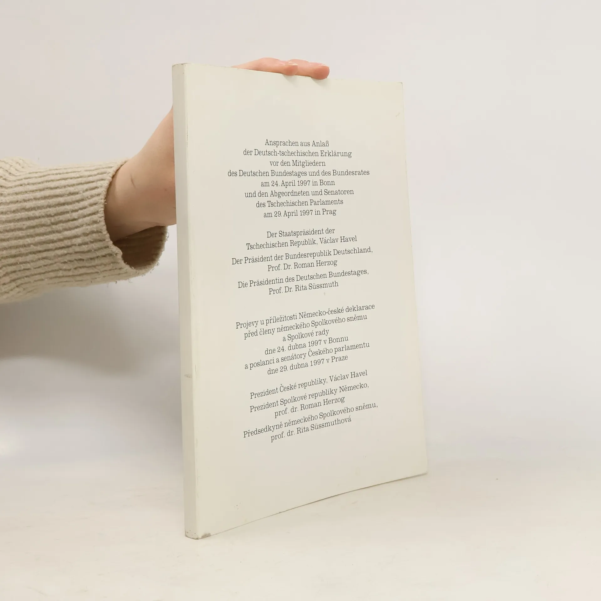 Ansprachen aus Anlaß der Deutsch-tschechischen Erklärung vor den Mitgliedern des Deutschen Bundestages und des Bundesrates am 24. April 1997 in Bonn und den Abgeordneten und Senatoren des Tschechischen Parlaments am 29. April 1997 in Prag, Autorenkollektiv