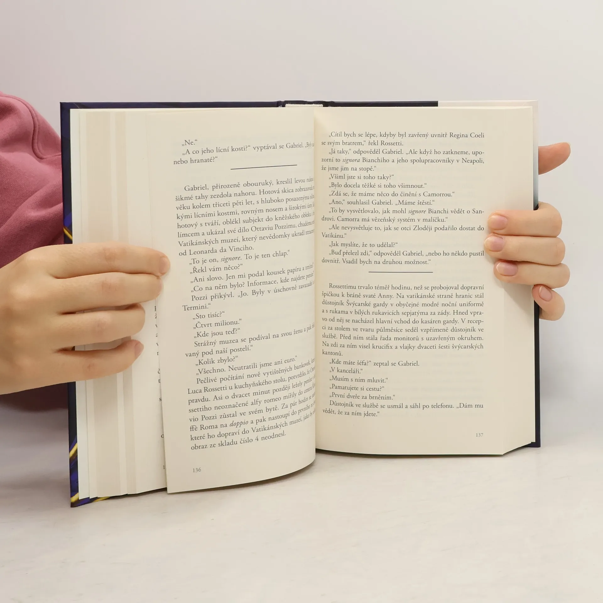 Někdy je jediným způsobem, jak získat zpět ukradené mistrovské dílo, ukrást ho ještě jednou… Gabriel Allon, restaurátor umění a bývalý generální ředitel izraelských tajných služeb, se usadil v Benátkách se svou rodinou, ale jeho klid je narušen. Po objevení těla záhadné ženy v benátské laguně se ocitá v závodě o nalezení ztraceného mistrovského díla Leonarda da Vinciho, které bylo více než století ukryto ve Vatikánských muzeích pod bezcennou přemalbou. Když obraz záhadně zmizí, Gabriel se dostává do nebezpečného světa mafiánů a zločinců, kteří za krádeží stojí. Děj se rychle přesouvá z Benátek do Londýna, Říma a na francouzskou riviéru, až směřuje k šokujícímu vyvrcholení na Svatopetrském náměstí, kde je v ohrožení život papeže. Tento román je elegantní a stylovou cestou temnými uličkami světa umění a špinavými financemi Vatikánu, a opět dokazuje autorovu mistrovskou schopnost vytvářet mezinárodní intriky a napětí, což ho činí právem bestsellerovým autorem číslo 1.