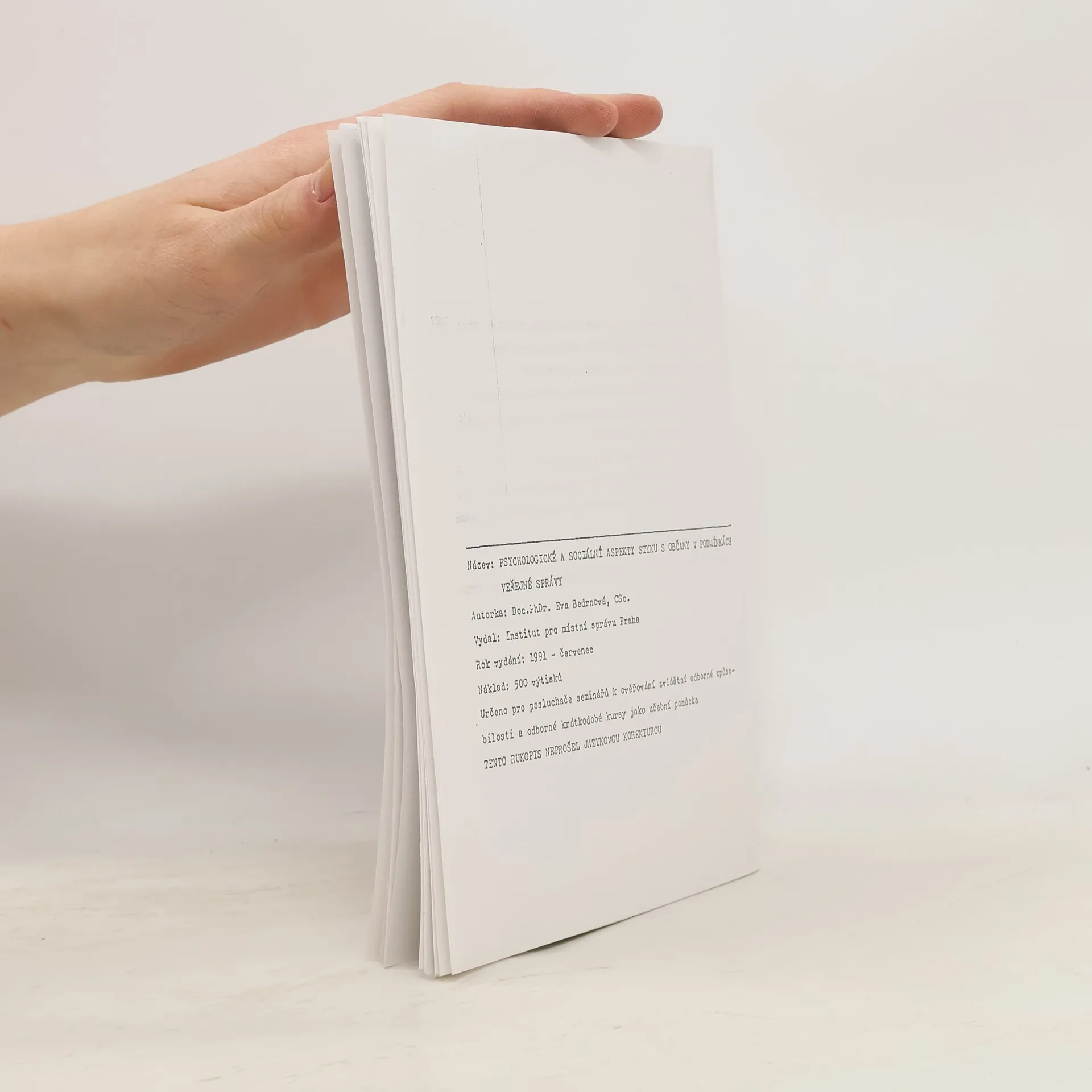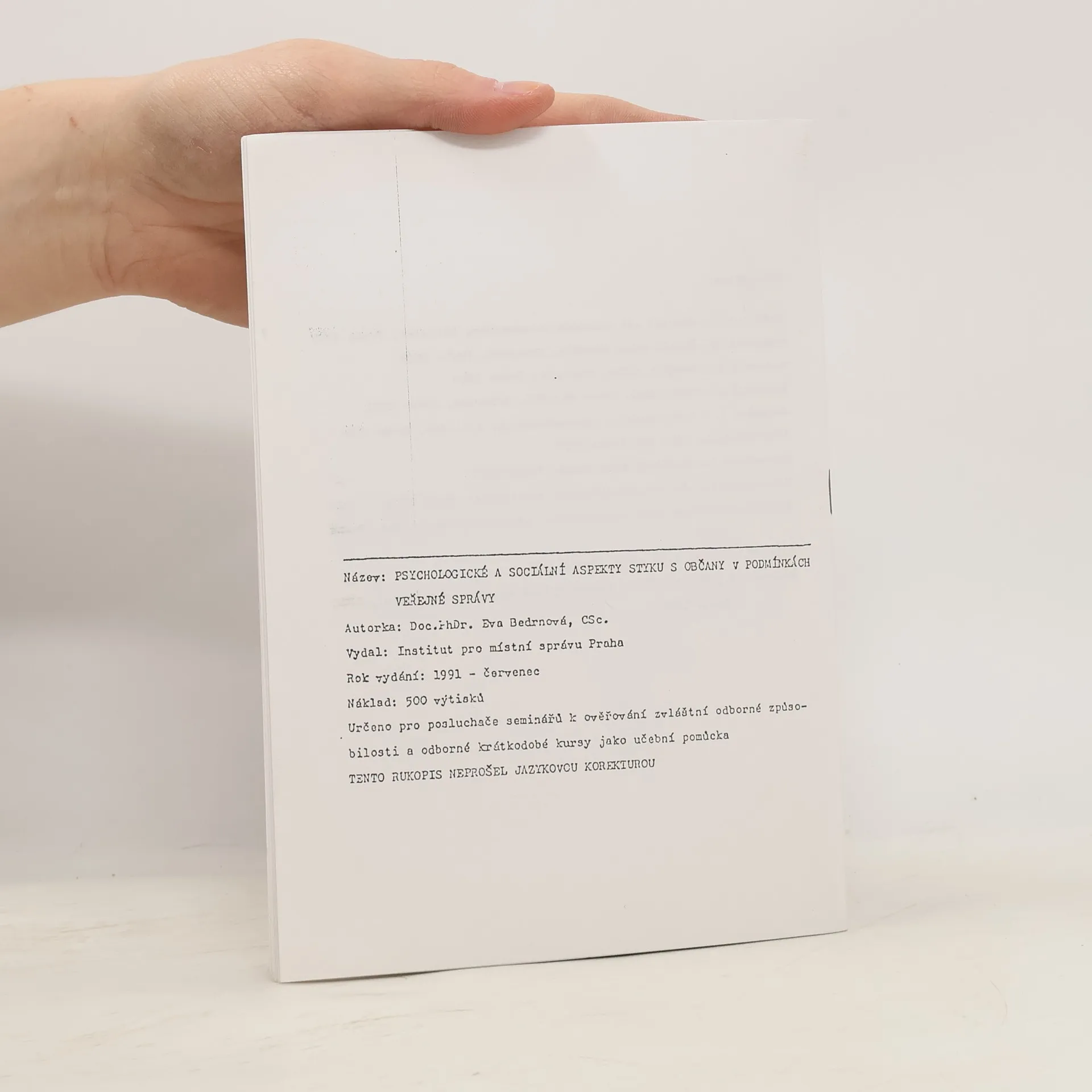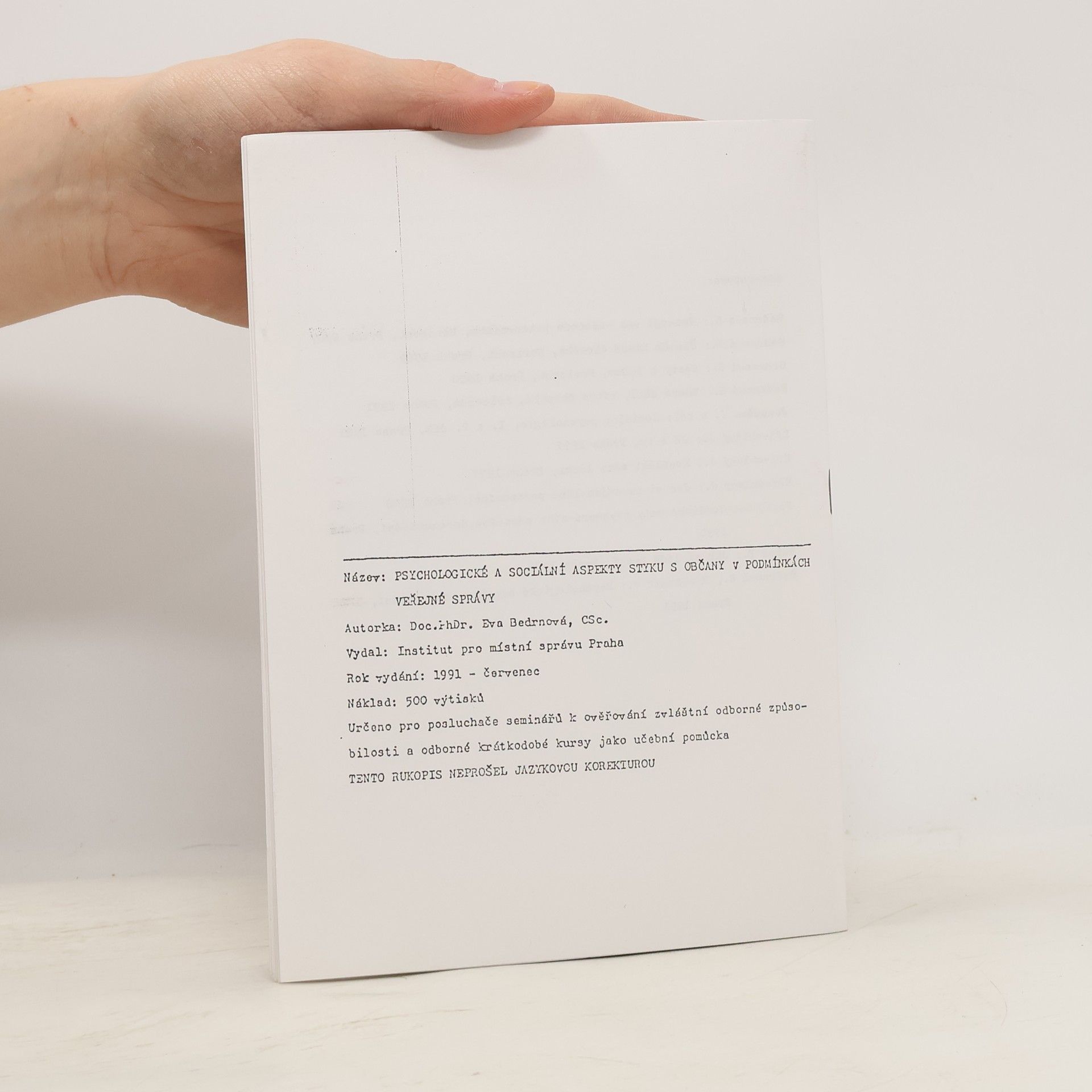 Psychologické a sociální aspekty styku s občany v podmínkách veřejné správy, Eva Bedrnová
