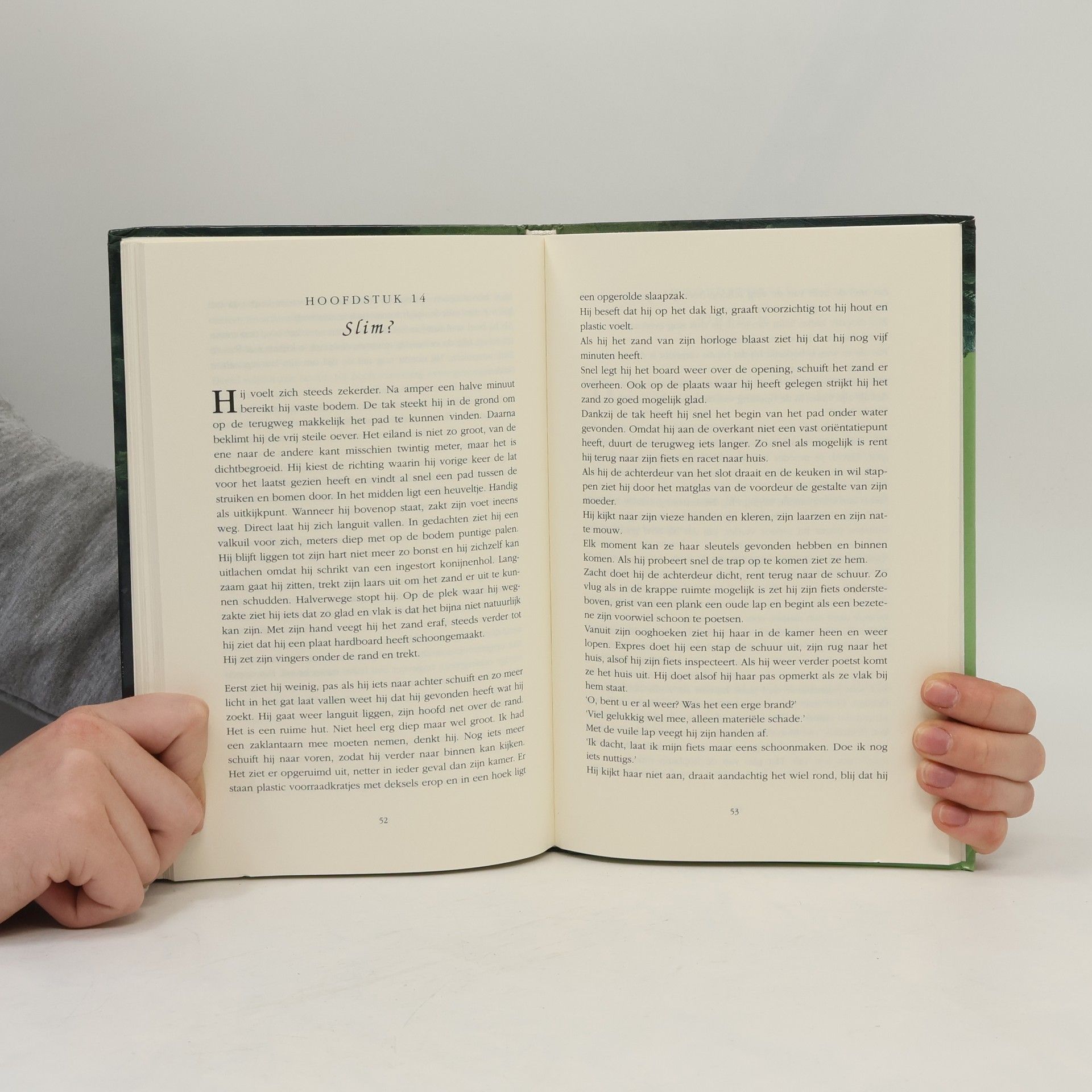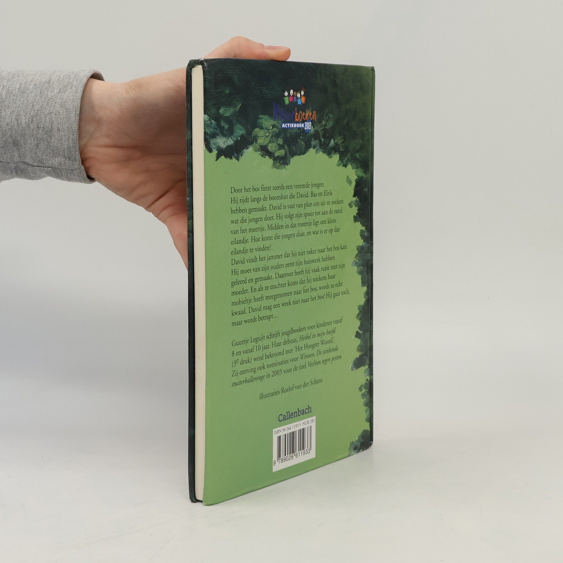 Door het bos fietst steeds een vreemde jongen. Hij rijdt langs de boomhut die David, Bas en Elrik hebben gemaakt. David is vast van plan om uit te zoeken wat die jongen doet. Hij volgt zijn spoor tot aan de rand van het meertje. Midden in dat meertje ligt een klein eilandje. Hoe komt die jongen daar, en wat is er op dat eilandje te vinden? David vindt het jammer dat hij niet vaker naar het bos kan. Hij moet van zijn ouders eerst zijn huiswerk hebben geleerd en gemaakt. Daarover heeft hij vaak ruzie met zijn moeder. En als ze erachter komt dat hij stiekem haar mobieltje heeft meegenomen naar het bos, wordt ze echt kwaad. David mag een week niet naar het bos! Hij gaat toch, maar wordt betrapt...