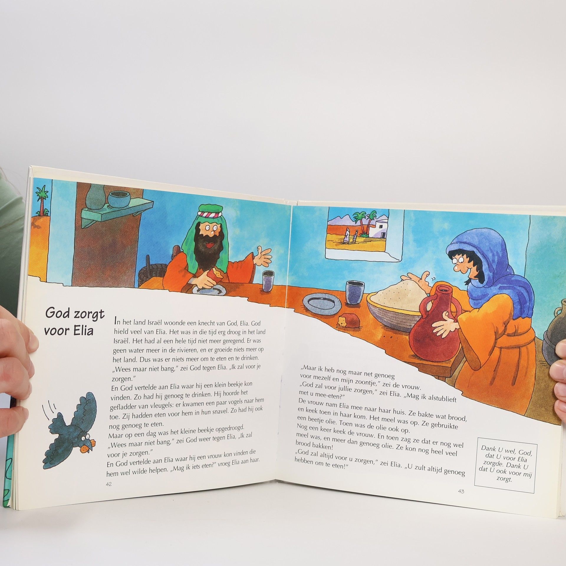Verhalen uit het Oude en Nieuwe Testament, die worden afgesloten met een kort gebed. Voorlezen vanaf ca. 4 jaar; zelf lezen vanaf ca. 8 jaar. Met kleurentekeningen.