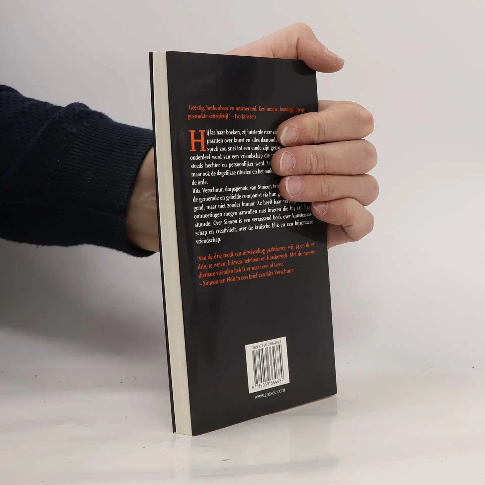 Een jaar na het overlijden van de populaire componist Simeon ten Holt brengt Rita Verschuur een eerbetoon aan hun vriendschap. Zij waren tien jaar bevriend. Ze woonden vlak bij elkaar in Bergen, maar het contact verliep niet zelden per brief of telefoon. En dan waren er de ontmoetingen, altijd thuis bij de componist, om vier uur 's middags, niet vroeger en niet later.De gesprekken gingen aanvankelijk over elkaars werk, de parallellen en verschillen. Ten Holt las boeken van Verschuur, zij luisterde naar zijn vele uiteenlopende composities. Maar het gesprek over hun handwerk, de bronnen van inspiratie, het slagen en mislukken, het proberen en verwerpen, zou snel aan zijn einde zijn gekomen als het niet onderdeel werd van een vriendschap die in de loop der jaren steeds hechter en persoonlijker werd. Alles kwam er aan de orde, de grote dingen des levens zoals liefde, ziekte en dood, maar ook de dagelijkse rituelen, de belemmeringen van het ouder worden.Rita Verschuur heeft haar verslag van hun ontmoetingen mogen aanvullen met brieven die de componist aan haar stuurde. Zo is Over Simeon niet alleen een uniek cadeau voor de nog steeds groeiende groep van Canto Ostinato-verslaafden en Simeon ten Holt-bewonderaars, maar ook een boek over een bijzondere vriendschap.