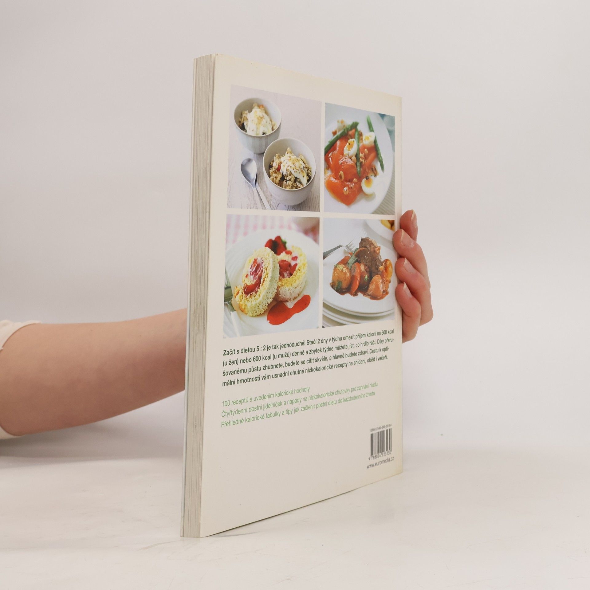 Začít s dietou 5 : 2 je tak jednoduché! Stačí 2 dny razantněji omezit příjem kalorií a zbytek týdne můžete jíst, co hrdlo ráčí. Díky přerušovanému půstu zhubnete, budete se cítit skvěle, a hlavně budete zdraví. Cestu k optimální hmotnosti vám usnadní 100 chutných nízkokalorických receptů na snídani, oběd i večeři. Čtyřtýdenní postní jídelníček a nápady na nízkokalorické chuťovky pro zahnání hladu jsou dobrou inspirací. Přehledné kalorické tabulky a tipy jak začlenit postní dietu do každodenního života Vás nalákají, abyste změnili svůj stravovací režim.