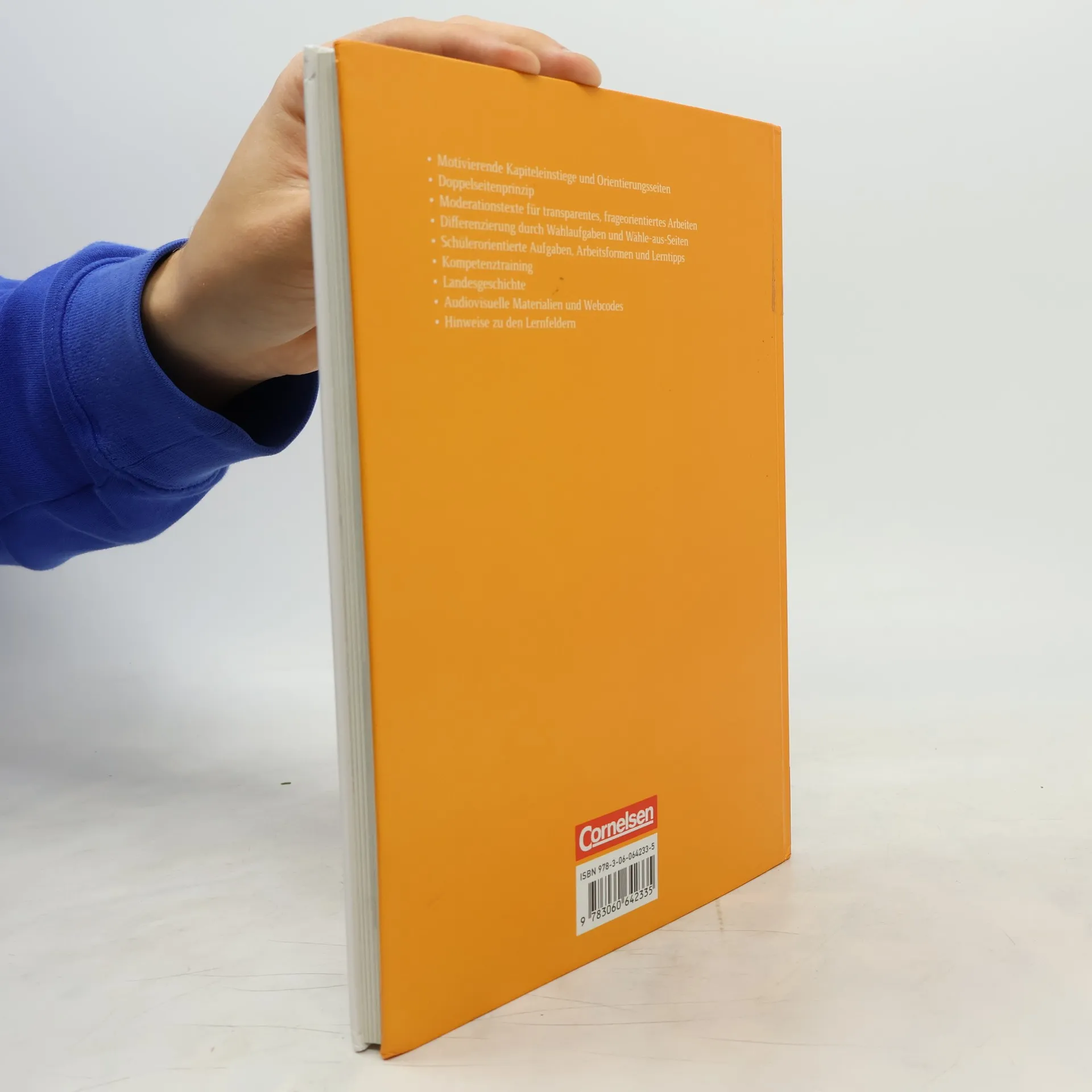 SchulbuchMotivierende Unterrichtseinstiege mit großformatigen Bildern und Kurztexten wecken Interesse und helfen, das Vorwissen der Schüler/-innen zu klären. Orientierungsseiten bieten Übersichten zu Epochen und Räumen. Die Themeneinheiten im Doppelseitenprinzip sind variabel auf unterrichtspraktische Bedürfnisse und Kompetenzanforderungen zugeschnitten: klassisch, exemplarisch oder als Überblick. Moderationstexte schaffen in jeder Stunde didaktische Transparenz. Die Materialien der Rubrik Geschichte kontrovers fördern Multiperspektivität und Kontroversität. Regionalgeschichte verankert Geschichte im regionalen Raum. Die kreativen Aufgaben sind abgestimmt auf unterschiedliche Lernertypen und Lernformen. Auf den Methodensonderseiten gibt es die Spezialaufgaben Methoden und im Anhang das Methodencurriculum. Differenzieren und Fördern wird möglich dank der Wähle-aus-Sonderseiten. Sie liefern niveau- und neigungsspezifische Materialien. Ebenso berücksichtigen die Wähle-aus-Aufgaben verschiedene Lerntypen und -niveaus. Lern-Tipps zur Lösung von Aufgaben ergänzen sie. Kompetenzen lassen sich trainieren und diagnostizieren mit Selbstdiagnosebögen, die per Webcode zur Verfügung stehen, und den Sonderseiten Kompetenzen prüfen. Digital und vernetzt wird das Lehrwerk mit Webcodes im Print-Schulbuch zu ausgewählten AV-Materialien und vertiefenden Angeboten.