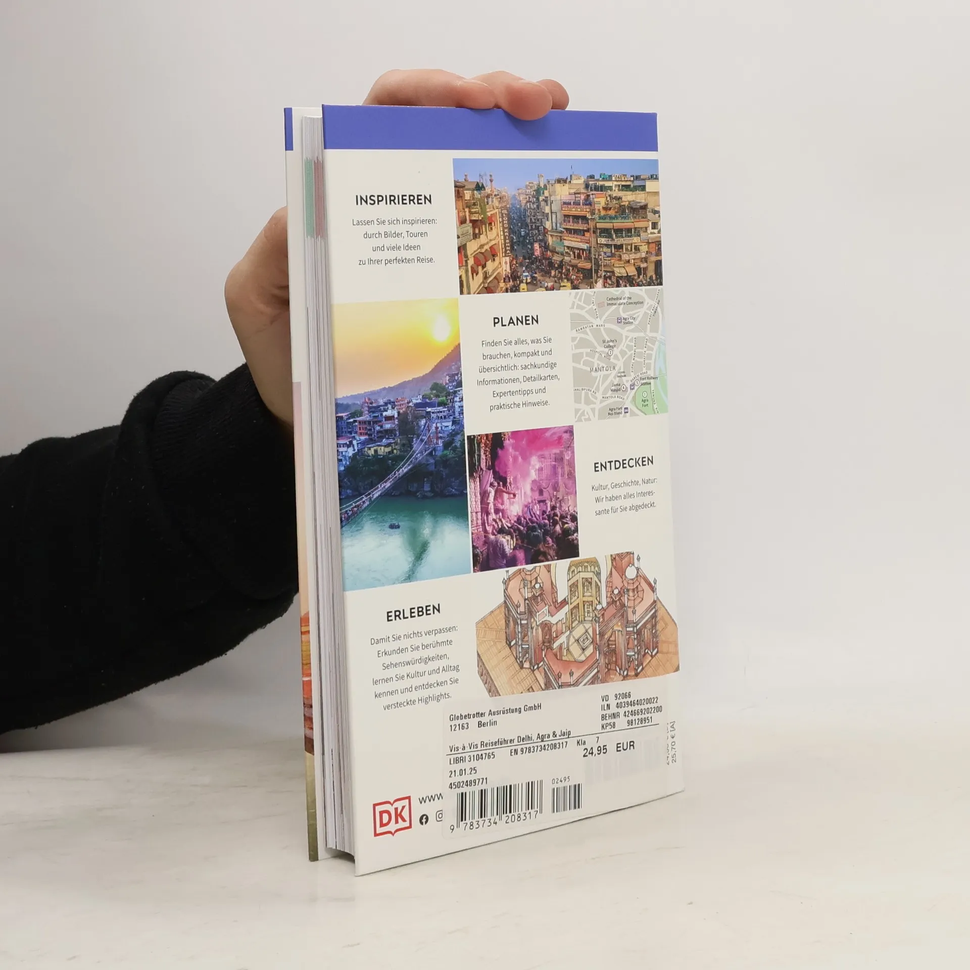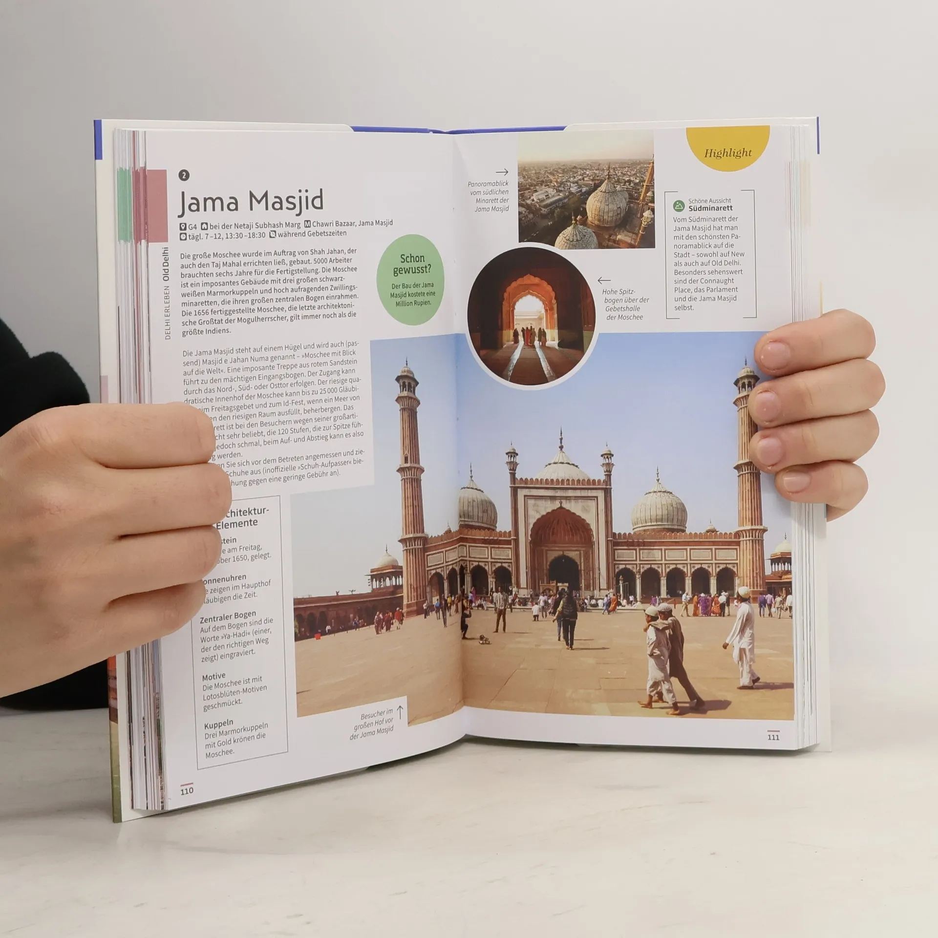 Auf nach Delhi – hier und jetzt beginnt Ihre Reise! Vom pulsierenden Großstadt-Leben in Delhi über den weltberühmten Taj Mahal in Agra bis zu den prächtigen Palästen Jaipurs und der eindrucksvollen Landschaft Nordindiens – der Vis-à-Vis Reiseführer Delhi, Agra & Jaipur nimmt Sie mit auf eine unvergessliche Entdeckungsreise durch das Goldene Dreieck Indiens. Mit ausführlichem Expertenwissen, den berühmten 3-D-Aufrisszeichnungen und über 350 stimmungsvollen Fotos können Sie die faszinierenden Städte und atemberaubenden Landschaften Nordindiens hautnah erleben. Dieser Delhi-Reiseführer ist der ultimative Begleiter für Ihren Urlaub im Norden Indiens! 10 Gründe, Vis-à-Vis-Reiseführer zu lieben: 1. Unverwechselbar visuelles Konzept. 2. Inspirierende Fotos versetzen direkt ans Reiseziel. 3. Einzigartige 3-D-Aufrisszeichnungen der spannendsten Bauwerke und gezeichnete Spaziergänge durch die schönsten Städte und Regionen. 4. Atmosphärische Themenseiten zum Reiseziel: von Kultur bis Genuss. 5. Hohe Benutzerfreundlichkeit durch klare Struktur. 6. Alle Highlights und Sehenswürdigkeiten Viertel für Viertel und Region für Region. 7. Detaillierte Karten mit allen vor Ort wichtigen Infos. 8. Alles Wichtige für die Reiseplanung kompakt. 9. Mehr Reisekomfort durch geringeres Gewicht und hochwertige Verarbeitung. 10. Vis-à-Vis bietet in höchster Qualität, was Reisende über Kulturgeschichte und Lebensart wissen wollen. Reiseführer Delhi, Agra &Jaipur – alle Buch-Highlights auf einen Blick: - Nordindien erwartet Sie: Entdecken Sie quirlige Städte voll überwältigender Energie, weltberühmte historische Monumente, eine herrlich würzige Küche mit einem Potpourri aus Aromen und imposante Festungen in majestätischer Lage: Lassen Sie sich mit dem praktischen und informativen Delhi, Agra & Jaipur Reiseführer zu den schönsten Erlebnissen, Attraktionen und Sehenswürdigkeiten der Region führen und tauchen Sie ein in die reiche kulturelle Vielfalt, die Nordindien für Sie bereithält. - Die schönsten Städte und Orte: Von den Vorbergen des Himalaya im Norden bis zu den felsigen Schluchten im Süden präsentiert Ihnen der Reiseführer die reizvollsten Orte des sogenannten „Goldenen Dreiecks“ Indiens in seiner ganzen Pracht – mit fundierten Inhalten sowie unvergesslichen Highlights aus Kultur und Alltag. Dazu gehören die bunten Märkte und historischen Gebäude in Delhi, der traumhafte Taj Mahal im südlich gelegenen Agra und die zerklüfteten Aravalli Hills im östlichen Rajasthan. Mit diesem Reiseführer können Sie sich Ihre perfekte Nordindien-Reise individuell zusammenstellen. - Das Beste für den Indien-Urlaub: Ob 2 Tage in Agra, 5 Tage in Delhi oder eine 2- Wochen-Rundreise durch Nordindien – die Reise lohnt sich! Hier gibt es facettenreiche Tipps, um das Beste aus Ihrem Trip herauszuholen. Lassen Sie sich von den Tourenplänen inspirieren und tauchen Sie schon vor dem Urlaub in die Highlights ein, die die Region zu bieten hat. Der 2-wöchige Touren-Vorschlag führt Sie beispielsweise von der Metropole Delhi über die spirituellen Stätten von Haridwar und Rishikesh am Ganges zu den kulturellen Schätzen von Agra und Jaipur. - Handgezeichnete 3-D-Aufrisszeichnungen: Sensationelle 3-D-Illustrationen liefern aus der Vogelperspektive ganz neue und einmalige Einblicke in die Sehenswürdigkeiten – wie Humayuns Grabmal, das sich spektakulär über die umliegenden palmengesäumten Gärten erhebt, oder die opulente Bergfestung Amber Fort, nördlich von Jaipur. Ob zur Einstimmung auf den Besuch oder als handlicher Begleiter unterwegs, die Darstellungen lassen Sie die Sehenswürdigkeiten Indiens völlig neu erleben. - Ausgewählte Top-Themen: Auf den bildgewaltigen Themenseiten des Indien- Reiseführers stehen charakteristische Besonderheiten im Fokus. Erkunden Sie farbenfrohe Märkte und stille Oasen, kulinarische Spezialitäten und lokales Kunsthandwerk sowie wilde Tiere und spannende Familien-Aktivitäten. - Unvergessliche Spaziergänge und Touren: Entlang beeindruckender Orte und Sehenswürdigkeiten spazieren und dabei alles Wichtige über Geschichte, Architektur, Museen oder Traditionen erfahren: Handgezeichnete Spaziergänge nehmen Sie mit auf eine erlebnisreiche Route – zum Beispiel beim Streifzug auf dem geschäftigen Boulevard Chandni Chowk in Old-Delhi, gesäumt von lebendigen Märkten und heiligen Schreinen, oder bei einem Spaziergang rund um den Badi Chauparin, den großen Marktplatz in der „Pink City“ Jaipur. - Inspirierende Fotografien: Ob farbenprächtige Basare, mächtige Paläste oder malerische Landschaften: Atmosphärische Sehnsuchtsbilder wecken Ihre Reiselust! Dank der wunderschönen und faszinierenden Fotos bringt Sie dieser Indien-Reiseführer gedanklich schon beim Durchblättern direkt ans Reiseziel. - Hohe Benutzerfreundlichkeit: Detaillierte, übersichtliche und große Karten ermöglichen es Ihnen, sich vor Ort zu orientieren. Sie weisen bereits auf einen Blick den Weg zu Restaurants, Hotels, Shops oder Sehenswürdigkeiten, sodass Sie problemlos durch Ihren Indien-Urlaub navigieren und keine Highlights verpassen. Zur schnellen Orientierung in Delhi ist der Reiseführer mit einer wetterfesten Extra-Karte zum Herausnehmen ausgestattet. - Praktische Reiseplanung: Im Reiseführer Delhi, Agra & Jaipur finden Sie zusätzlich nützliche Informationen zu Themen wie Anreise, Gesundheit oder Mobilität vor Ort – und zwar übersichtlich auf einen Blick. - Passt in jeden Rucksack: Ihr formschöner und hochwertiger Reiseführer ist ein echtes Leichtgewicht und lässt sich deshalb prima mitnehmen. Sie sind auf der Suche nach Tipps für Ihre Reise ins Goldene Dreieck Indiens? Jetzt einfach den DK Vis-à-Vis Reiseführer aufschlagen und eintauchen – er entführt Sie mitten hinein ins Urlaubsziel.