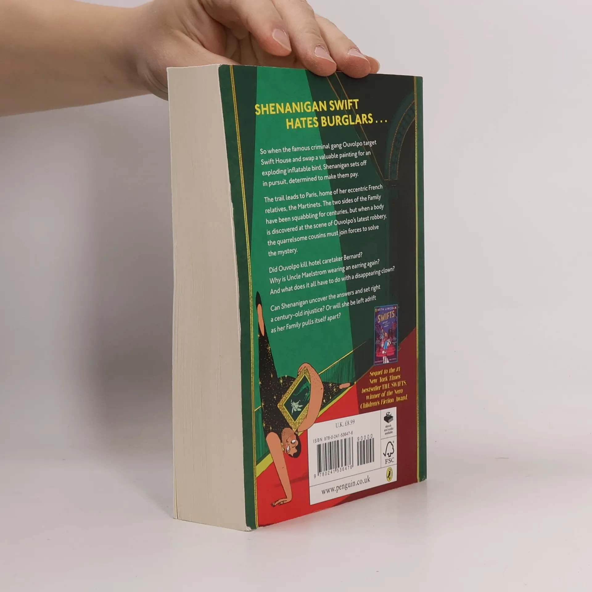 Sequel to the New York Times-bestselling The Swifts - a gleeful gothic mystery perfect for fans of Lemony Snicket and Robin Stevens. Shenanigan Swift hates burglars . . . So when the famous criminal gang Ouvolpo target Swift House and swap a valuable painting for an exploding inflatable bird, Shenanigan sets off in pursuit, determined to make them pay The trail leads to Paris, home of her eccentric French cousins, the Martinets. The two sides of the Family have been squabbling for centuries, but when a body is discovered at the scene of Ouvolpo's latest robbery, the quarrelsome cousins must join forces to solve the mystery Did Ouvolpo kill hotel caretaker Bernard? Why is Uncle Maelstrom wearing an earring again? And what does it all have to do with a disappearing clown Can Shenanigan uncover the answers and set right a century-old injustice? Or will she be left adrift as her Family pulls itself apart? The Swifts won the 2023 Nero Children's Fiction Award and the Barnes & Noble Children's Book Award, and was nominated for the Carnegie Medal.