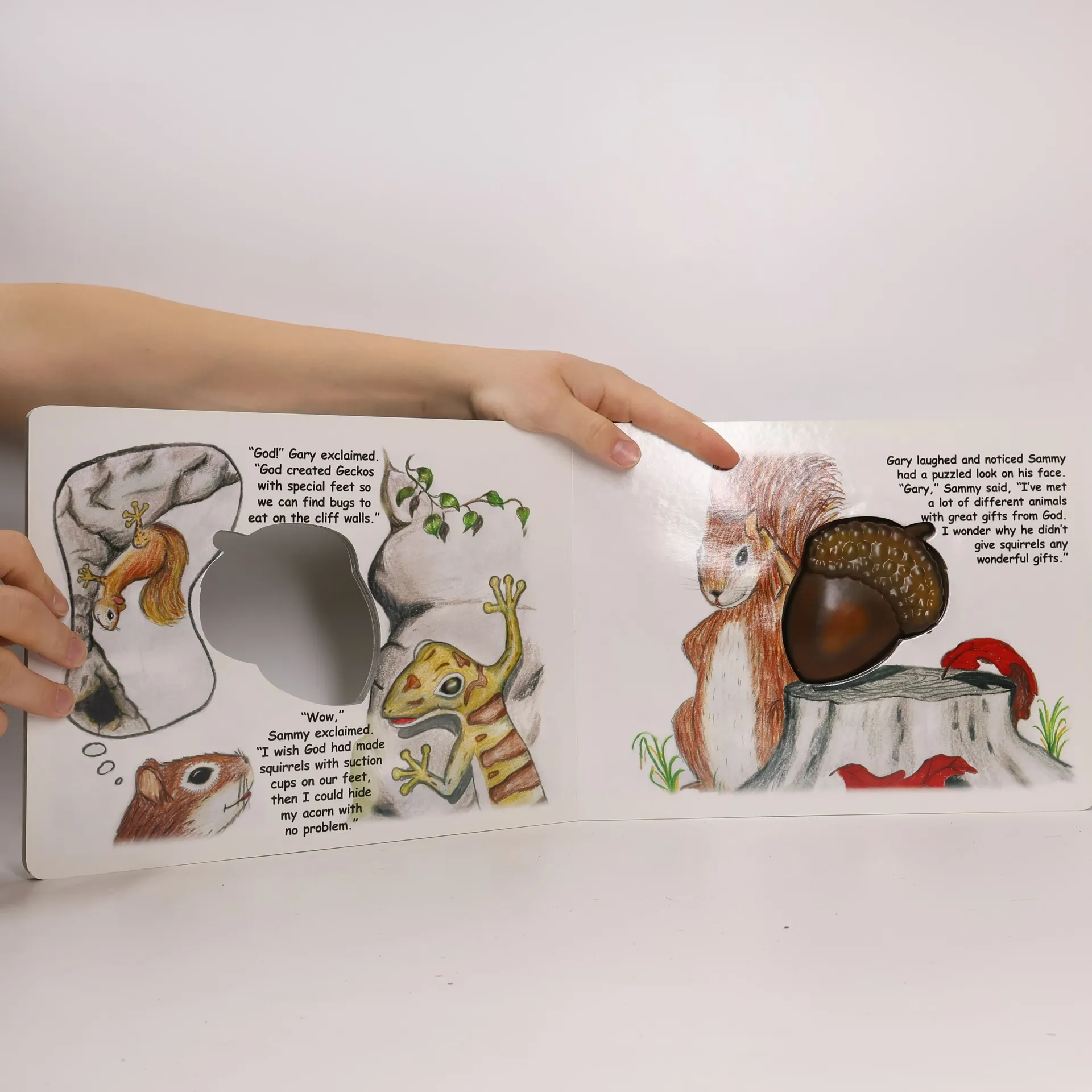 Sammy the squirrel learns about God's gifts when he gets help from his friends while trying to find a place to hide the biggest acorn he has ever found, in a story with die-cut pages that allow readers to see a plastic acorn. On board pages.