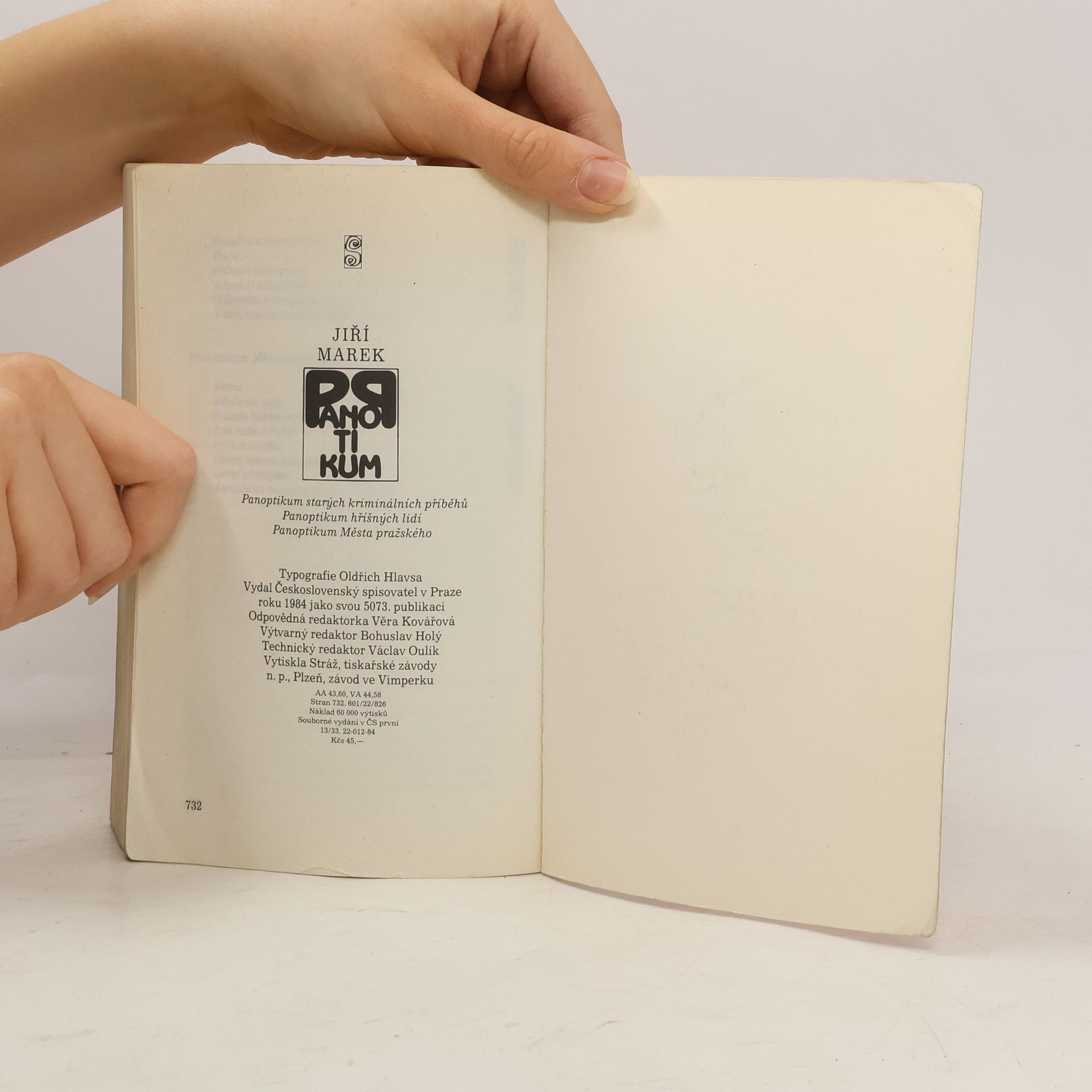 Kniha je souborným vydáním tří knih z pražské galérky. Panoptikum starých kriminálních příběhů, Panoptikum hříšných lidí a Panoptikum Města pražského. v ČS: 1. souborné vydání Pozn.: - Vydáno pod autorovým pseudonymem Jiří Marek. - Autor obálky M. Jaroš není v tiráži aniv impresu uveden.