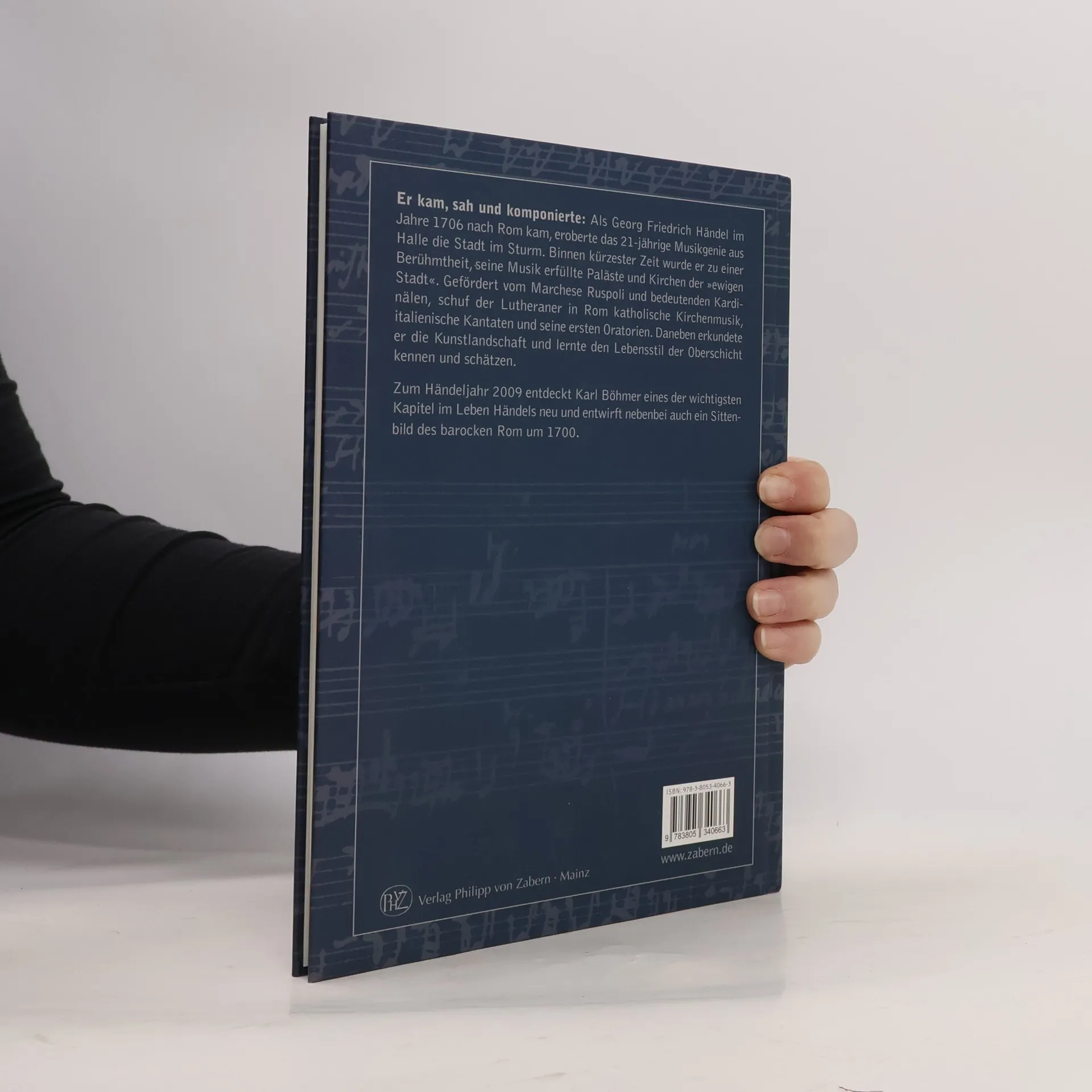 Er kam, sah und komponierte: Als Georg Friedrich Händel Ende 1706 nach Rom kam, eroberte das 21-jährige Musikgenie aus Halle die Paläste und Kirchen der Stadt im Sturm. Binnen kürzester Zeit wurde „Il Sassone“ („der Sachse“) zu einer Berühmtheit. Gefördert vom Marchese Ruspoli und bedeutenden Kardinälen, schuf der Lutheraner in Rom katholische Kirchenmusik, italienische Kantaten und seine ersten Oratorien. Daneben erkundete er die Kunstwerke der „ewigen Stadt“ und lernte den Lebensstil der Oberschicht kennen und schätzen – so entwirft dieser Band auch ein Sittenbild des barocken Rom um 1700. Böhmer beschreibt aber ebenso Händels spätere Erinnerungen an diese Stadt, die sein gesamtes Schaffen bis zum „Messias“ prägten.