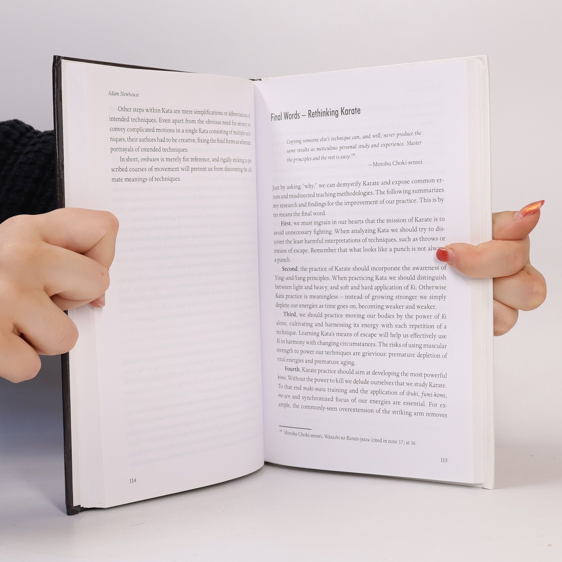 In his new book, Black Belts Only: The Invisible but Lethal Power of Karate, Adam Newhouse explains traditional Karate as if he was there at the art's birth. At last,there is a book that (a) reveals the secrets of Kime (focused concentration)without which traditional Karate does not exist, (b) analyzes punching and blocking techniques from a fresh perspective, and, most importantly, (c) decodes the esoteric language of Kata.To Newhouse, Karate is not a sport or exotic physical exercise. It is a cold-sober serious endeavor where the interplay of life and death is always in the back of the practitioner's mind. To truly follow Budo, the Karate-ka must learn, practice,and perfect lethal techniques - as Newhouse methodically explains.There is more. Indeed, the book deserves to be read if only for demystifying Kata, which, as the author tells it, historically have been presented to us in a secret code.For the first time since Karate has gone public, Black Belts Only has extracted and placed before us several conventions present in all Kata which practitioners can use to finally understand and translate Kata's hidden language and make sense of the movements. Theory and practice become clear with generous photographs and lucid text. Newhouse explains the meaning of the first movement of every Shotokan Kata (no, those are not "blocks," as commonly thought) and explains Kata's other techniques. Black Belts Only is that rare book that advances the practice of Karate like few before it.Black Belts Only features a foreword by Patrick McCarthy, Hanshi 9th Dan.