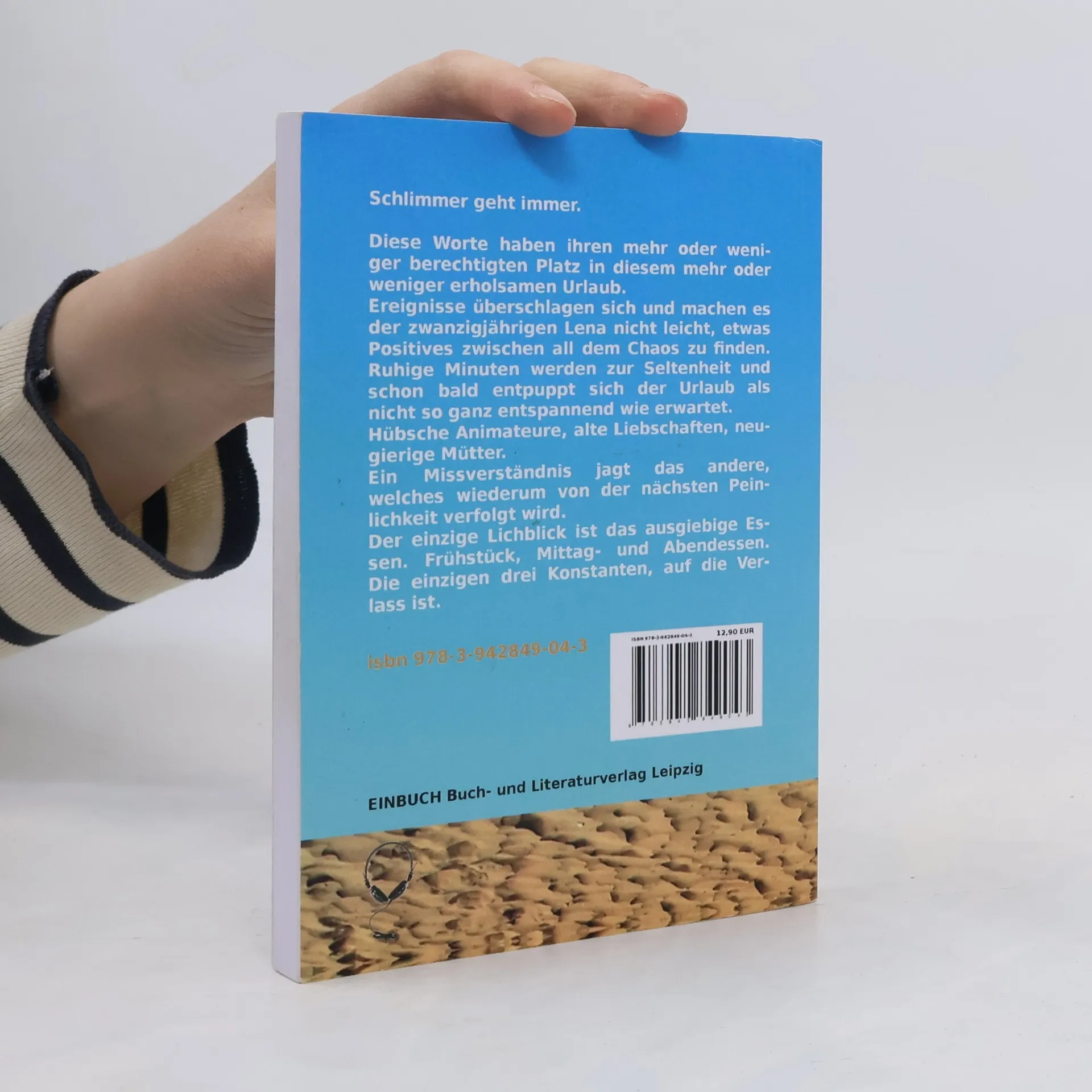 Schlimmer geht immer. Diese Worte haben ihren mehr oder weniger berechtigten Platz in diesem mehr oder weniger erholsamen Urlaub. Ereignisse überschlagen sich und machen es der zwanzigjährigen Lena nicht leicht, etwas Positives zwischen all dem Chaos zu finden. Ruhige Minuten werden zur Seltenheit und schon bald entpuppt sich der Urlaub als nicht so ganz entspannend wie erwartet. Hübsche Animateure, alte Liebschaften, neugierige Mütter. Ein Missverständnis jagt das andere, welches wiederum von der nächsten Peinlichkeit verfolgt wird. Der einzige Lichblick ist das ausgiebige Essen. Frühstück, Mittag- und Abendessen. Die einzigen drei Konstanten, auf die Verlass ist.