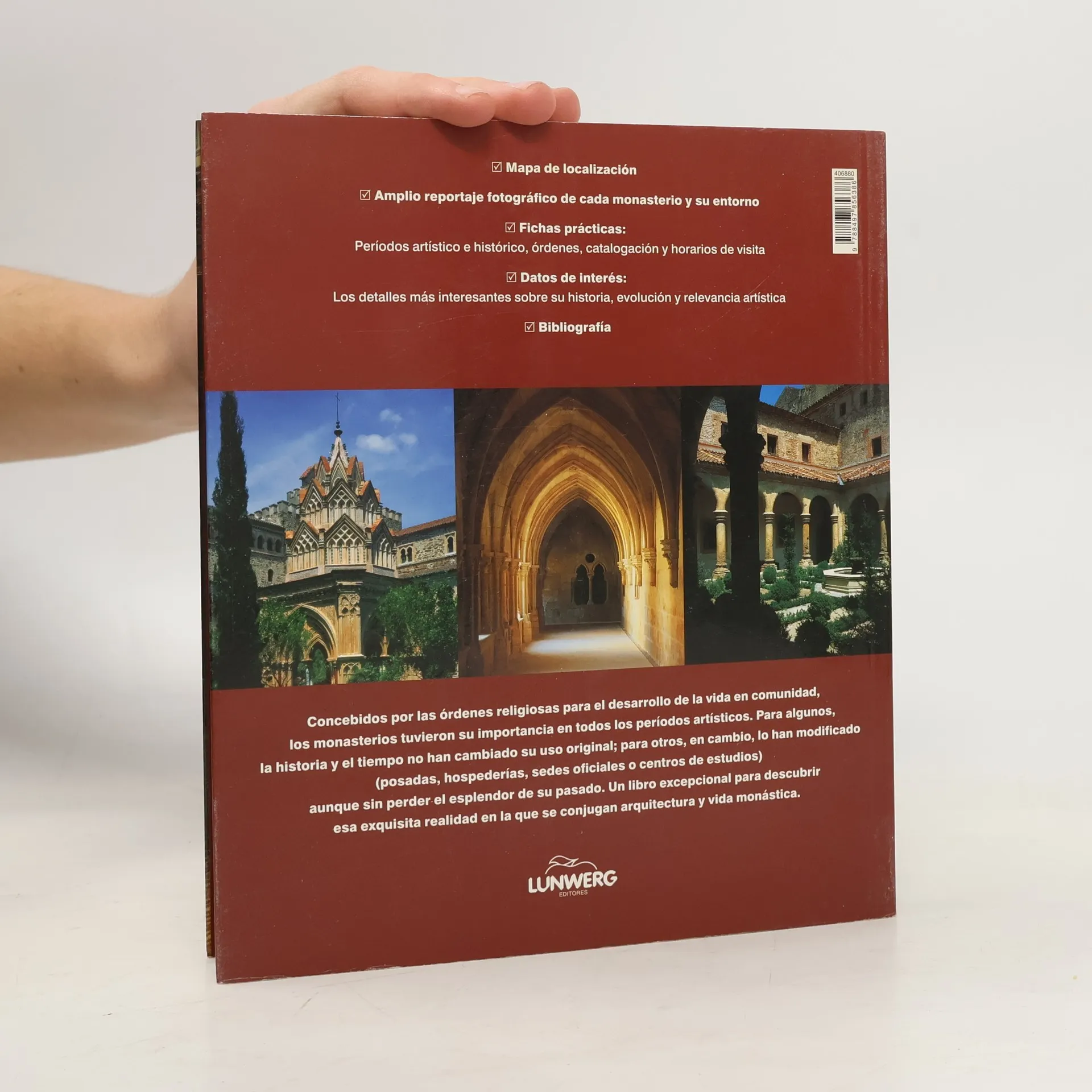 Una invitación al viaje para descubrir los más importantes monasterios de nuestro país, clasificados por órdenes religiosas. Concebidos como lugares donde se forjó y desarrolló la vida monástica, el tiempo y la historia se han encargado de mantener o variar el uso dado a los mismos, sin perder el brillo y la singularidad de algunas de las páginas más brillantes de nuestra arquitectura.El libro incluye una selección bibliográfica.