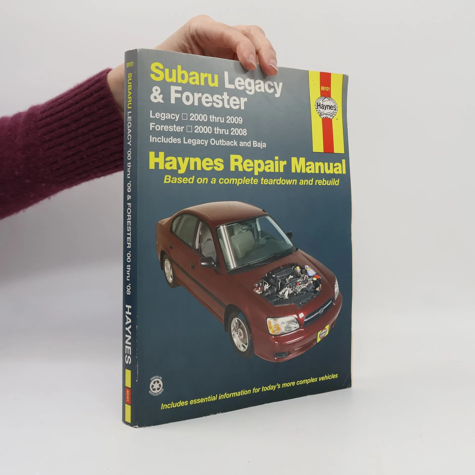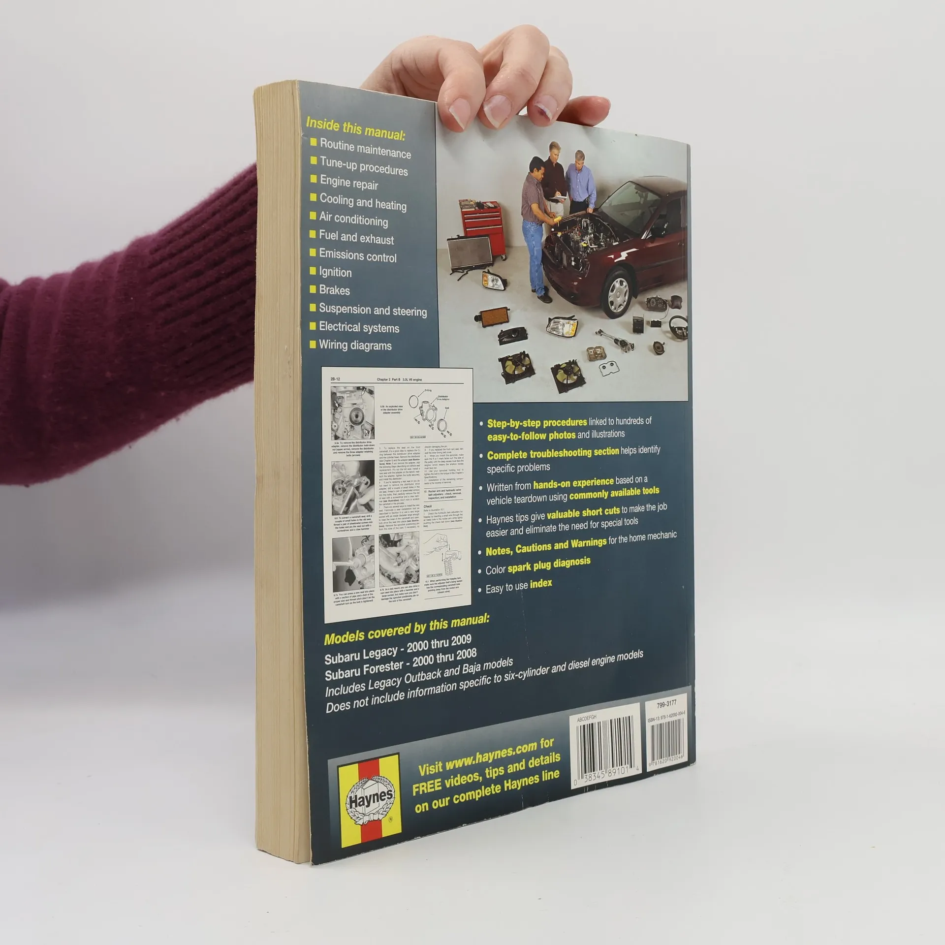 With a Haynes manual, you can do it yourself…from simple maintenance to basic repairs. Haynes writes every book based on a complete teardown of the vehicle. We learn the best ways to do a job and that makes it quicker, easier and cheaper for you. Our books have clear instructions and hundreds of photographs that show each step. Whether you’re a beginner or a pro, you can save big with Haynes! -Step-by-step procedures -Easy-to-follow photos -Complete troubleshooting section -Valuable short cuts -Color spark plug diagnosis Complete coverage for your Subaru Legacy (2000-2009) and Forester (2000-2008), including Legacy Outback and Baja. (Does not include information specific to six-cylinder and diesel engine models): -Routine Maintenance -Tune-up procedures -Engine repair -Cooling and heating -Air Conditioning -Fuel and exhaust -Emissions control -Ignition -Brakes -Suspension and steering -Electrical systems -Wiring diagrams