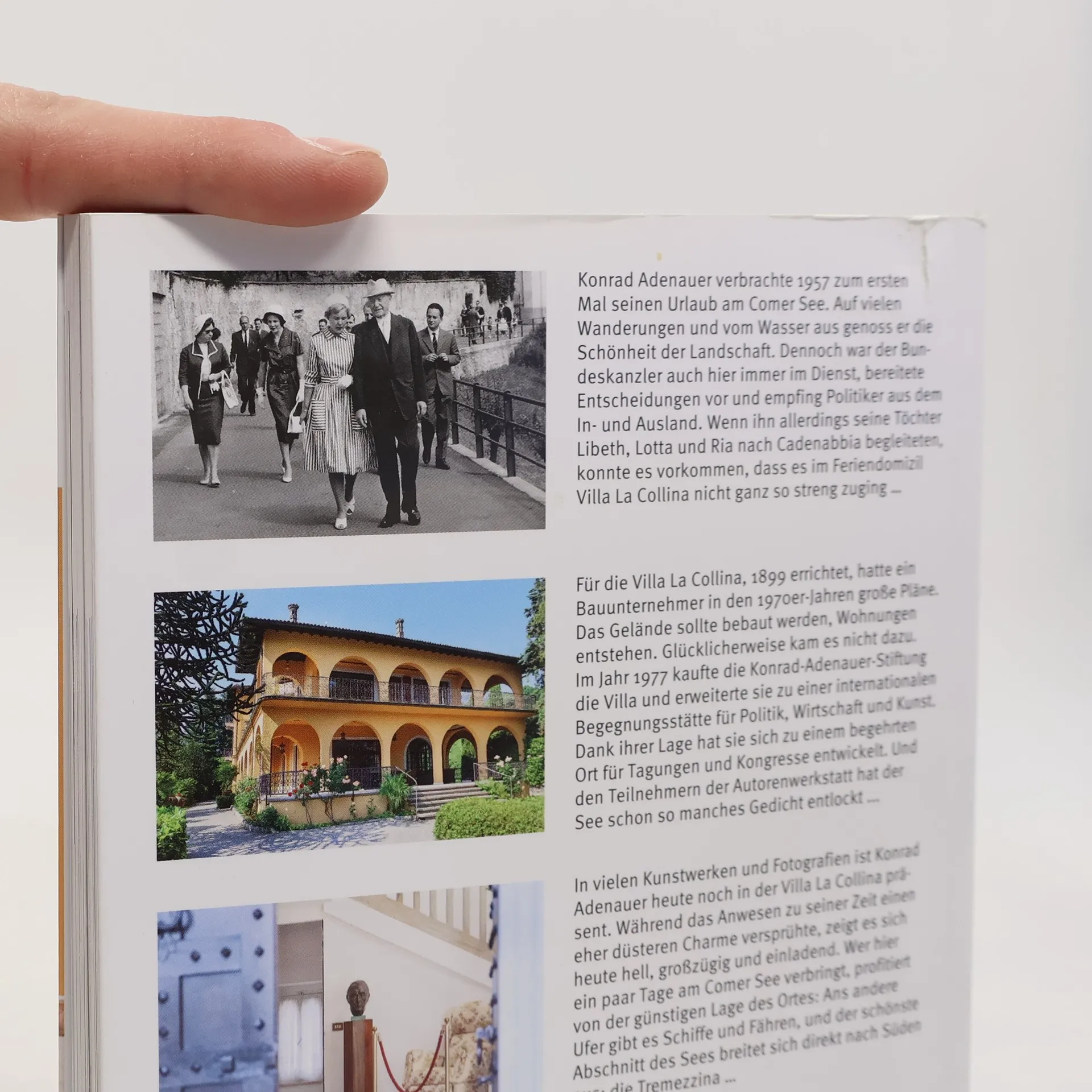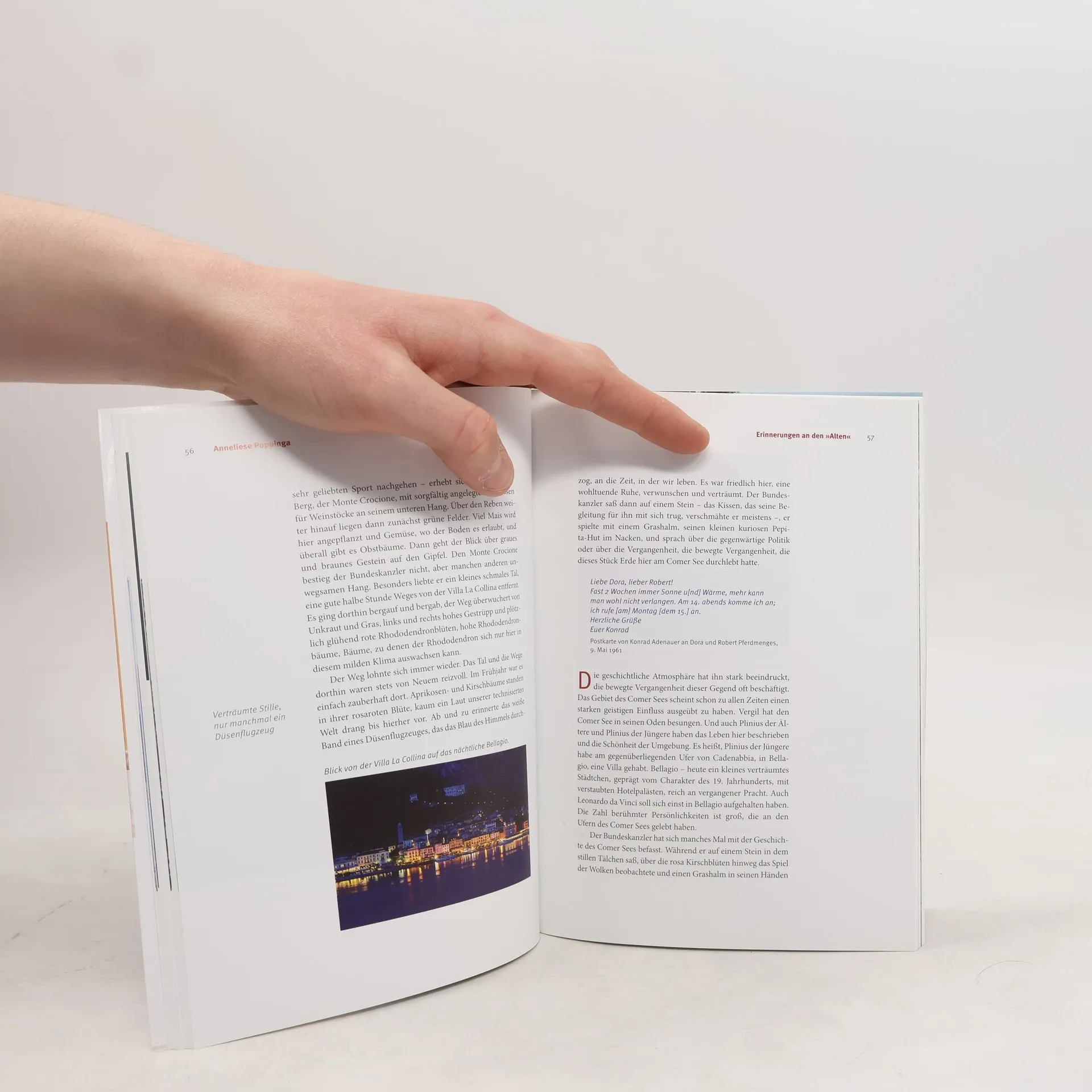 Es war ein deutscher Politiker, der vielleicht am nachhaltigsten dazu beigetragen hat, das Bild des Comer Sees zu prägen: Konrad Adenauer, der erste deutsche Bundeskanzler, erkor den See über viele Jahre hinweg zu seinem bevorzugten Urlaubsziel. Er war von der Landschaft und der jahrhundertealten Geschichte dieses Landstrichs fasziniert. Der erste Teil dieses Buchs erzählt aus ebenjener Geschichte, schildert Konrad Adenauers Aufenthalte in Cadenabbia und lässt Zeitzeugen wie seine Sekretärin Anneliese Poppinga oder den Historiker Golo Mann zu Wort kommen. Außerdem bietet er Informationen über die Villa La Collina als internationalen Ort der Begegnung und als Urlaubsdomizil. Der zweite Teil blättert die vielfältigen touristischen Reize des Comer Sees und seiner Umgebung auf: die Stadt Como, das Westufer mit den prunkvollen Villen und hübschen Dörfern, das malerische Bellagio auf der Halbinsel zwischen den beiden Armen des Sees u. v. m. Sechs Wanderungen führen zu jahrhunderte- oder sogar jahrtausendealten Stätten und eröffnen wundervolle Ausblicke.