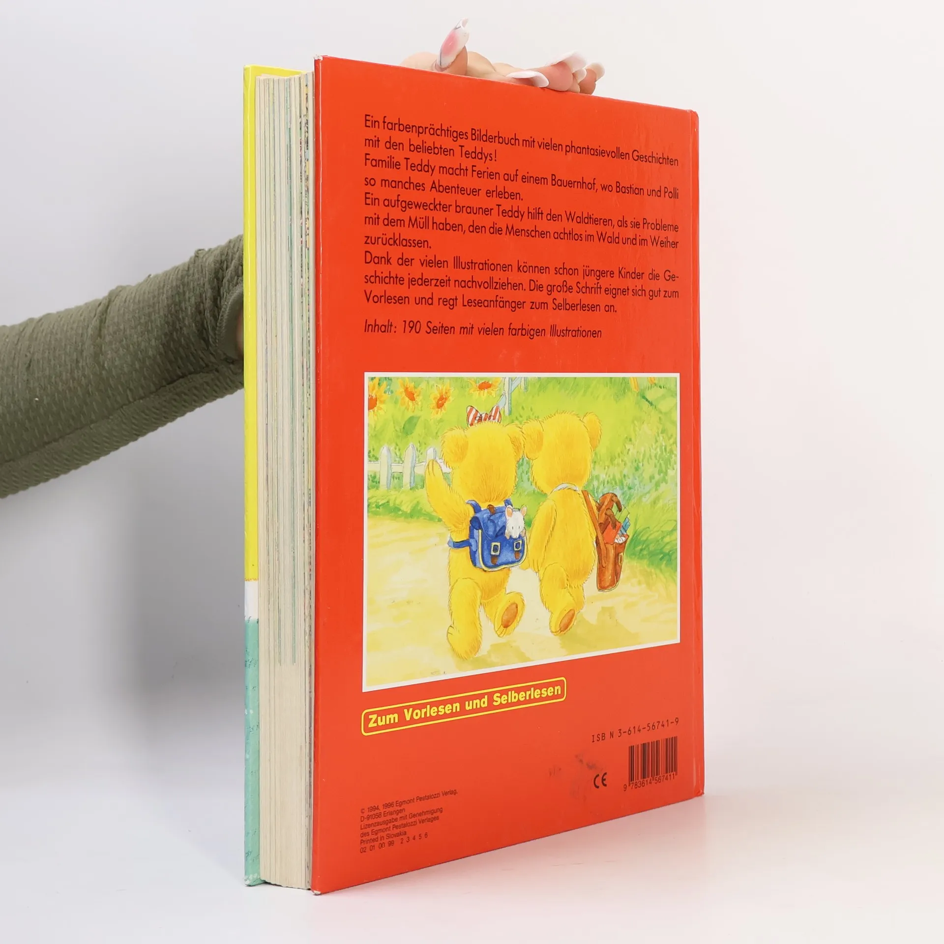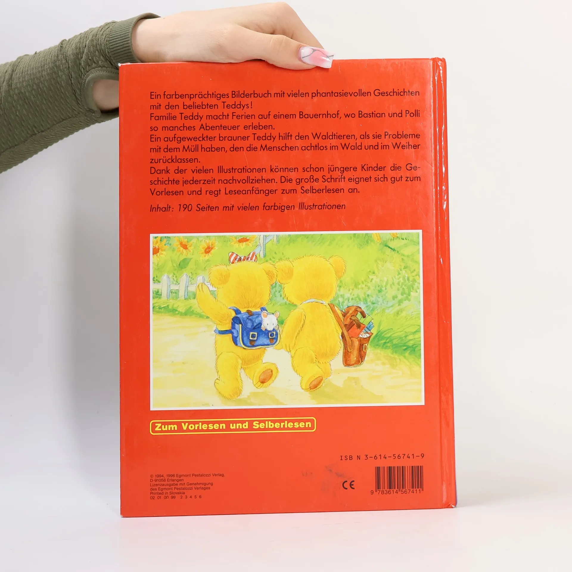 Ein farbenprächtiges Bilderbuch mit vielen phantasievollen Geschichten mit den beliebten Teddys! Familie Teddy macht Ferien auf einem Bauernhof, wo Bastian und Polli so manches Abenteuer erleben. Ein aufgeweckter brauner Teddy hilft den Waldtieren, als sie Probleme mit dem Müll haben, den die Menschen achtlos im Wald und im Weiher zurücklassen. Dank der vielen Illustrationen können schon jüngere Kinder die Geschichte jederzeit nachvollziehen.