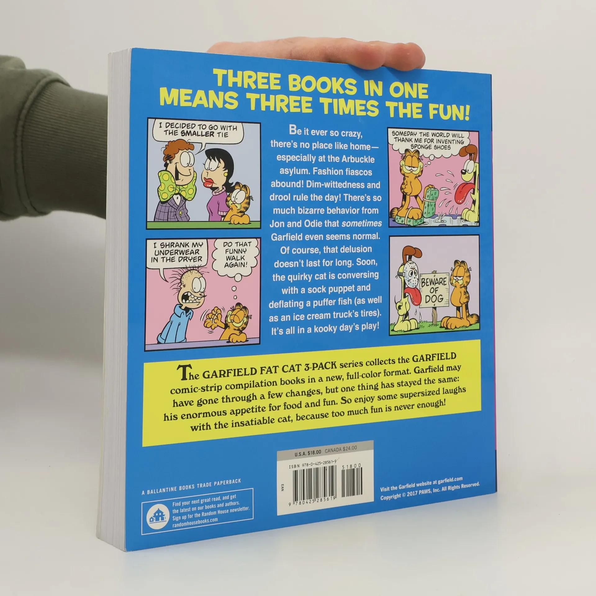 This rollicking collection includes three books in Garfield Sings for His Supper, Garfield Wide Load, and Garfield Souped Up . Be it ever so crazy, there’s no place like home—especially at the Arbuckle asylum. Fashion fiascos abound! Dim-wittedness and droll rule the day! There’s so much bizarre behavior from Jon and Odie that sometimes Garfield even seems normal. Of course, that delusion doesn’t last for long. Soon, the quirky cat is conversing with a sock puppet and deflating a puffer fish (as well as an ice cream truck’s tires). It’s all in a kooky day’s play! The GARFIELD FAT CAT 3-PACK series collects the GARFIELD comic-strip compilation books in a new, full-color format. Garfield may have gone through a few changes, but one thing has stayed the his enormous appetite for food and fun. So enjoy some supersized laughs with the insatiable cat, because too much fun is never enough!
