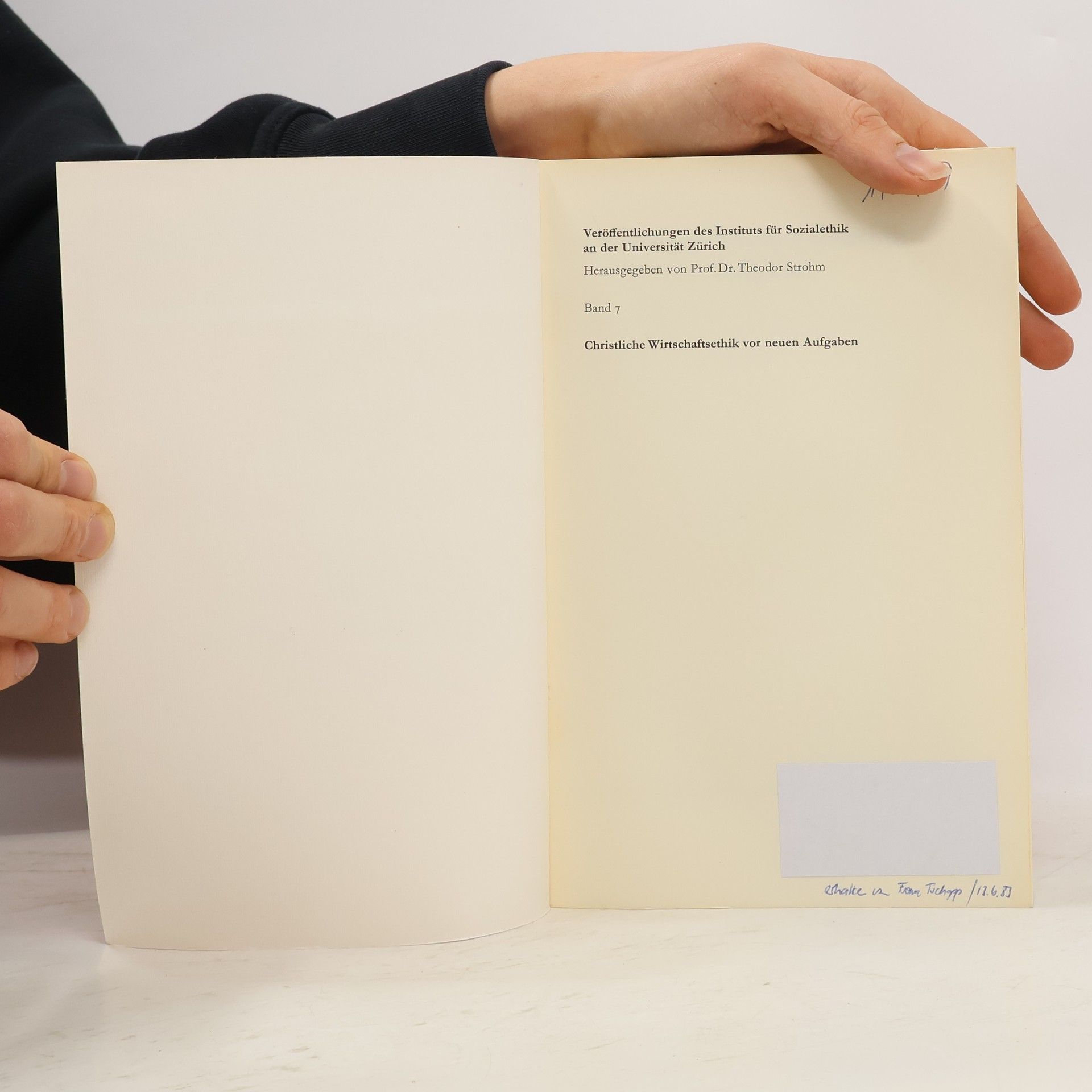 Veröffentlichungen des Instituts für Sozialethik an der Universität Zürich - 7: Christliche Wirtschaftsethik vor neuen Aufgaben, Theodor Strohm