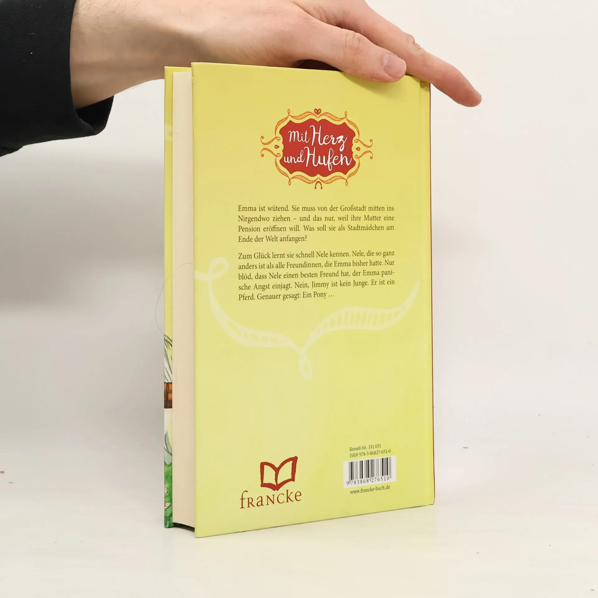 Emma ist wütend. Sie muss von der Großstadt mitten ins Nirgendwo ziehen – und das nur, weil ihre Mutter eine Pension eröffnen will. Was soll sie als Stadtmädchen am Ende der Welt anfangen? Zum Glück lernt sie schnell Nele kennen. Nele, die so ganz anders ist als alle Freundinnen, die Emma bisher hatte. Nur blöd, dass Nele einen besten Freund hat, der Emma panische Angst einjagt. Nein, Jimmy ist kein Junge. Er ist ein Pferd. Genauer gesagt: Ein Pony … Coverillustration von Stefanie Klaßen.
