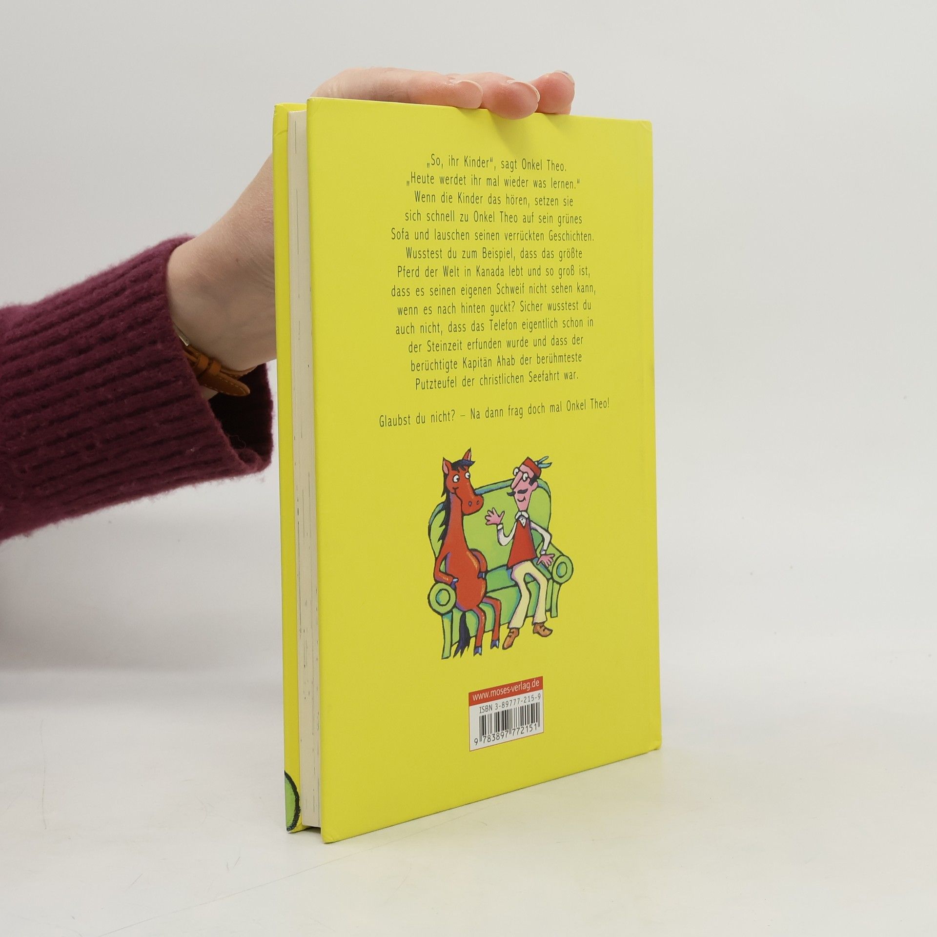 Onkel Theo erzählt den Kindern verrückte Geschichten, wie die von einem riesigen Pferd in Kanada und dem Putzteufel Kapitän Ahab. Obwohl die Kinder ihm oft nicht glauben, bleibt Onkel Theo hartnäckig und erzählt weiter. Ein liebevoll gestaltetes Buch mit 27 fantasievollen Geschichten und bunten Illustrationen.