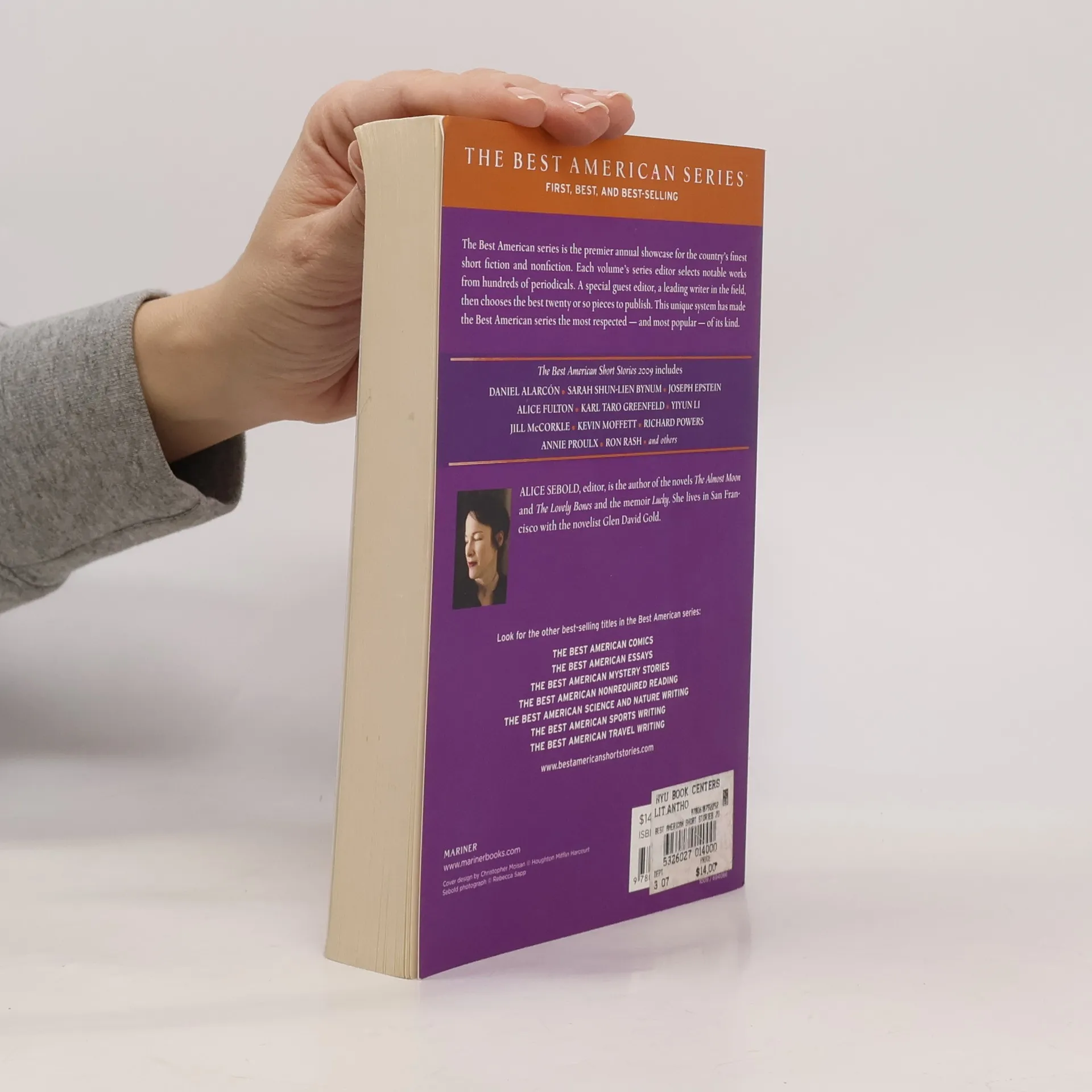 Edited by critically acclaimed, best-selling author Alice Sebold, the stories in this year's collection serve as a provacative literary "antenna for what is going on in the world" ( Chicago Tribune) . The collection boasts great variety from "famous to first-timers, sifted from major magazines and little reviews, grand and little worlds" ( St. Louis Post-Dispatch) , ensuring yet another rewarding, eduring edition of the oldest and best-selling Best American.