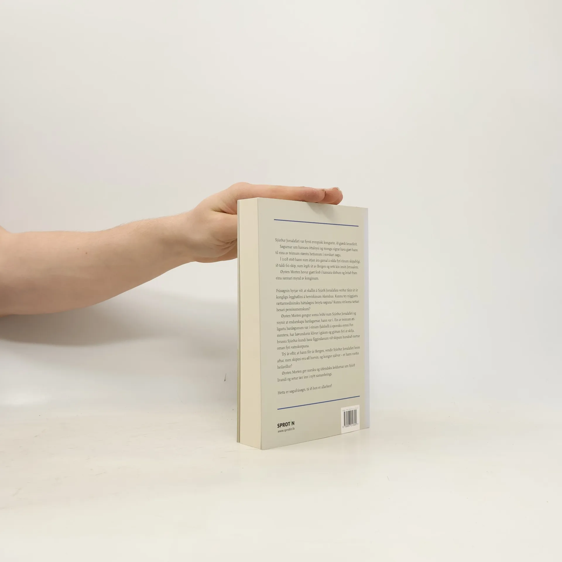 Sjúrður Jorsalafari var fyrsti europeiski kongurin, ið gjørdi krossferð. Søgurnar um hansara dirvi og mongu sigrar hava gjørt hann til hetju í norskari søgu. Í 1108 stóð hann sum átjan ára gamal á odda fyri einum skipafylgi, ið taldi 60 skip, sum legði út av Bergen og setti kós ímóti Jerusalem. Øystein Morten hevur gjørt ferð í hansara slóðum. Frásøgnin byrjar við, at skallin á Sjúrði Jorsalafara verður tikin út úr kongligu legghøllini á hervirkinum Akershus. Kunnu tey nýggjastu rættarmedisinsku háttaløgini broyta søguna? Kunnu vit koma tættari hesari persónsmenskuni?