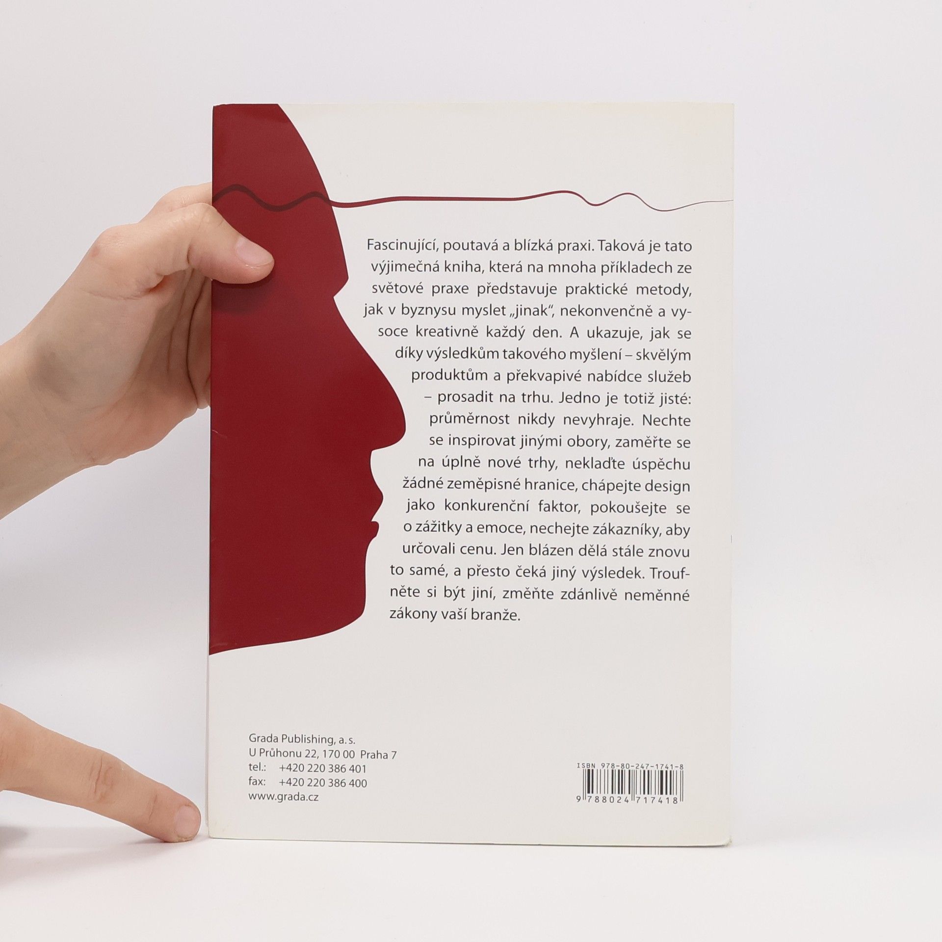 Fascinující, poutavá a blízká praxi. Taková je tato výjimečná kniha, která na mnoha příkladech ze světové praxe představuje praktické metody, jak v byznysu myslet ''jinak'', nekonvenčně a vysoce kreativně každý den. A ukazuje, jak se díky výsledkům takového myšlení - skvělým produktům a překvapivé nabídce služeb - prosadit na trhu. Jedno je totiž jisté: průměrnost nikdy nevyhraje. Nechte se inspirovat jinými obory, zaměřte se na úplně nové trhy, neklaďte úspěchu žádné zeměpisné hranice.