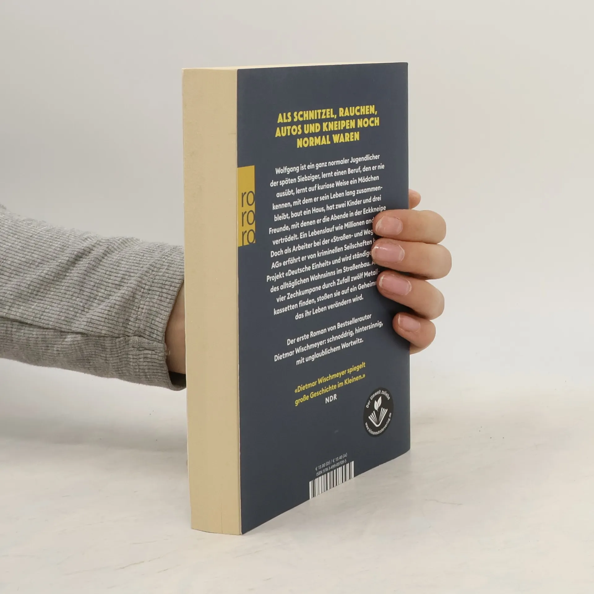 Der erste Roman von Bestsellerautor Dietmar Wischmeyer: schnoddrig, hintersinnig, mit unglaublichem Wortwitz. Wolfgang ist ein ganz normaler Jugendlicher der späten Siebziger, lernt einen Beruf, den er nie ausübt, lernt ein Mädchen auf kuriose Weise kennen, mit dem er sein Leben lang zusammenbleibt, baut ein Haus, hat zwei Kinder und drei Freunde, mit denen er die Abende in der Eckkneipe vertrödelt. Ein Lebenslauf wie Millionen andere. Doch als Arbeiter bei der «Straßen- und Wegebau AG» erfährt er von kriminellen Seilschaften beim Projekt «Deutsche Einheit» und wird ständiger Zeuge des alltäglichen Wahnsinns im Straßenbau. Nebenher versucht Wolfgang Schrage, das Leben eines ganz normalen Familienvaters zu führen, kollidiert dabei allerdings mit den abstrusen Ideen seiner drei Freunde von der Theke. Als die vier Zechkumpanen durch Zufall zwölf Metallkassetten finden, stoßen sie auf ein Geheimnis, das ihr Leben verändern wird und alles, was bisher geschah, auf überraschende Weise in einem neuen Licht erscheinen lässt.