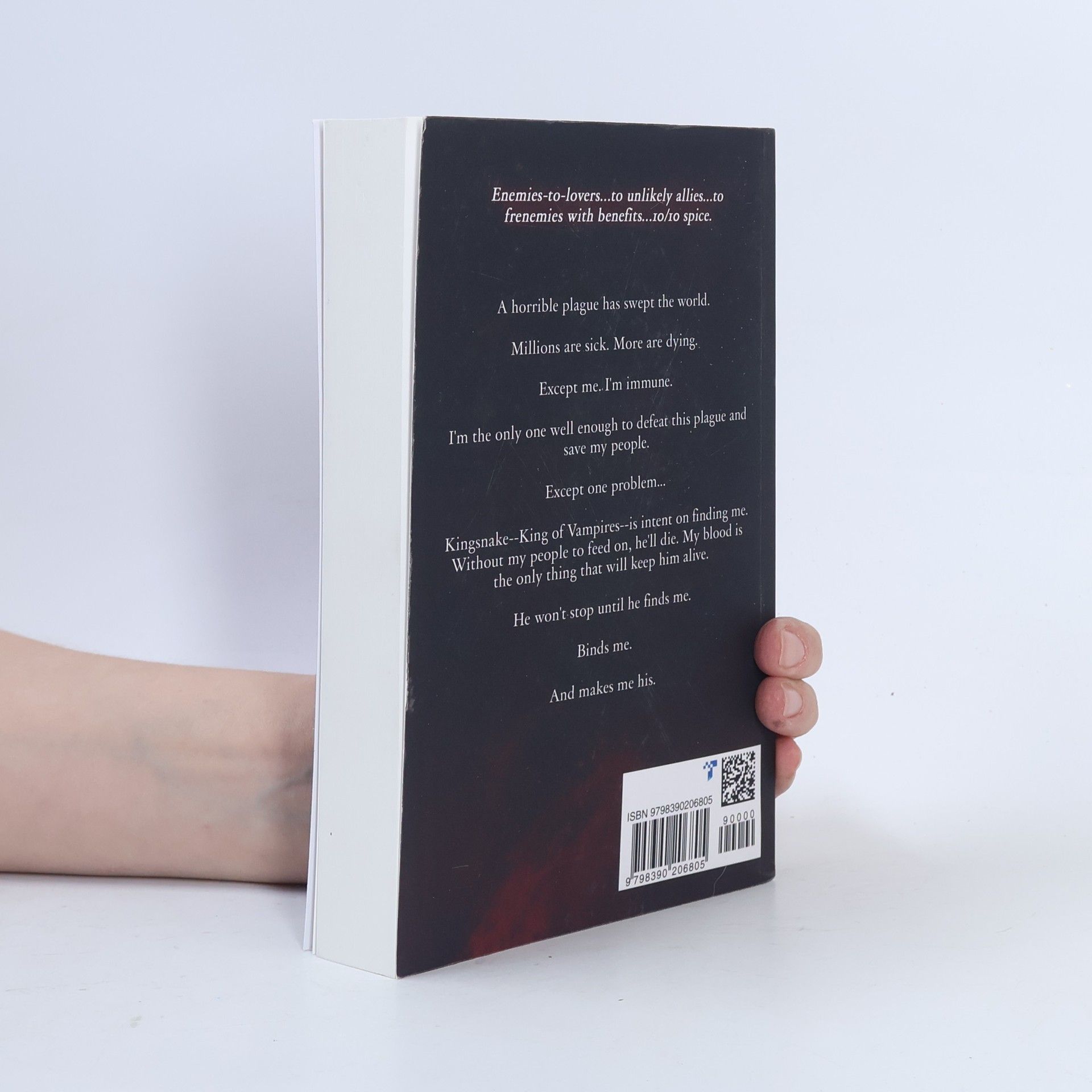 Enemies-to-lovers...to unlikely allies...to frenemies with benefits...10/10 spice. A horrible plague has swept the world. Millions are sick. More are dying. Except me. I'm immune. I'm the only one well enough to defeat this plague and save my people. Except one problem... Kingsnake--King of Vampires--is intent on finding me. Without my people to feed on, he'll die. My blood is the only thing that will keep him alive. He won't stop until he finds me. Binds me. And makes me his. --