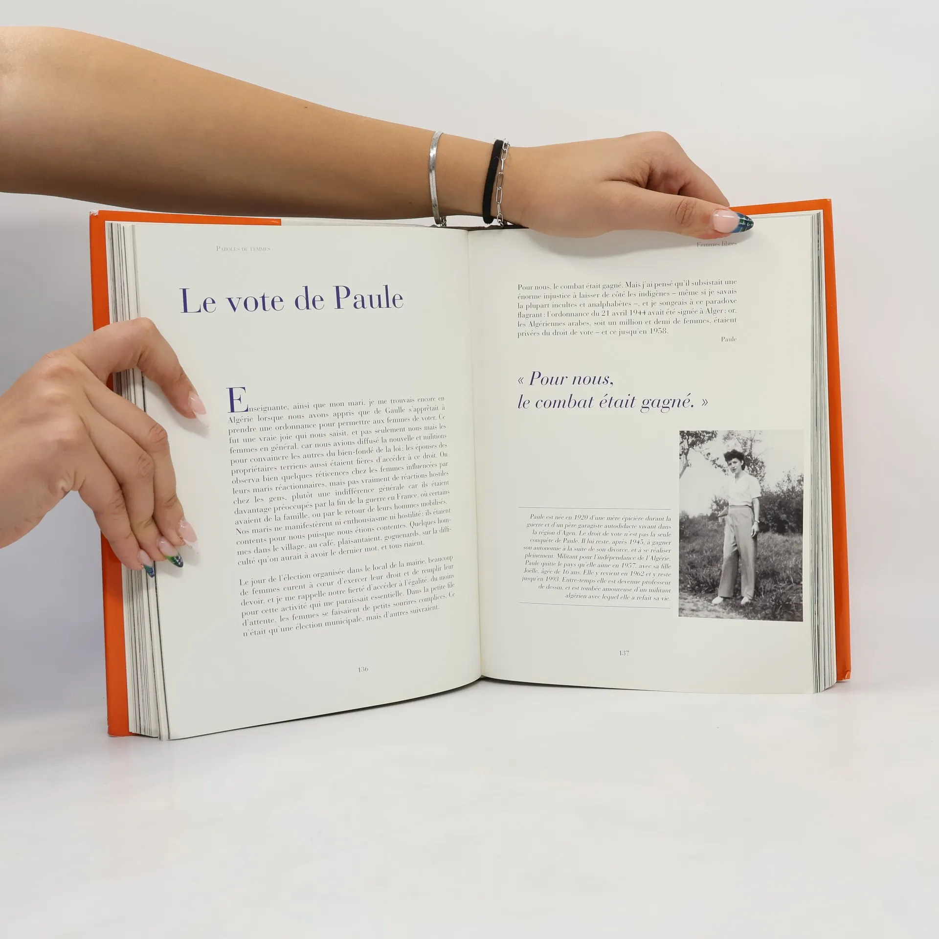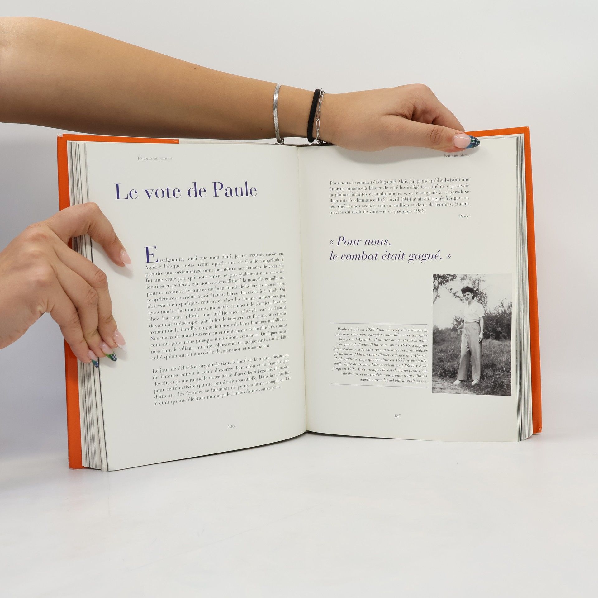 Textes choisis et présentés par Jean-Pierre Guéno, avec une introduction d'Isabelle Giordano. Femmes de l'ombre, femmes en guerre, femmes libres, femmes assumées... De 1900 à aujourd'hui, quatre générations de Françaises se parlent et se répondent. Expériences intimes, déchirures, passions, combats... Des textes bouleversants, des visages qui ne s'oublient pas, leurs histoires nous emportent. " [...] En découvrant ces " Paroles de femmes ", j'ai été frappée par leur modernité : les femmes d'hier nous sont proches. Quelle que soit la date à laquelle elles écrivent, elles parlent aux femmes d'aujourd'hui.[...] [...] Ce recueil est un livre plus féminin que féministe. Il parle de luttes, mais ne revendique pas. Il déroule une belle page de l'histoire de l'Humanité aux valeurs universelles [...] [...] Je rends hommage à ces femmes à qui nous devons tant. Puisse ce livre porter dans les librairies, les écoles, les bibliothèques, sur les ondes de Radio France et dans le coeur des lectrices, leur irremplaçable liberté de regard ! " Isabelle Giordano