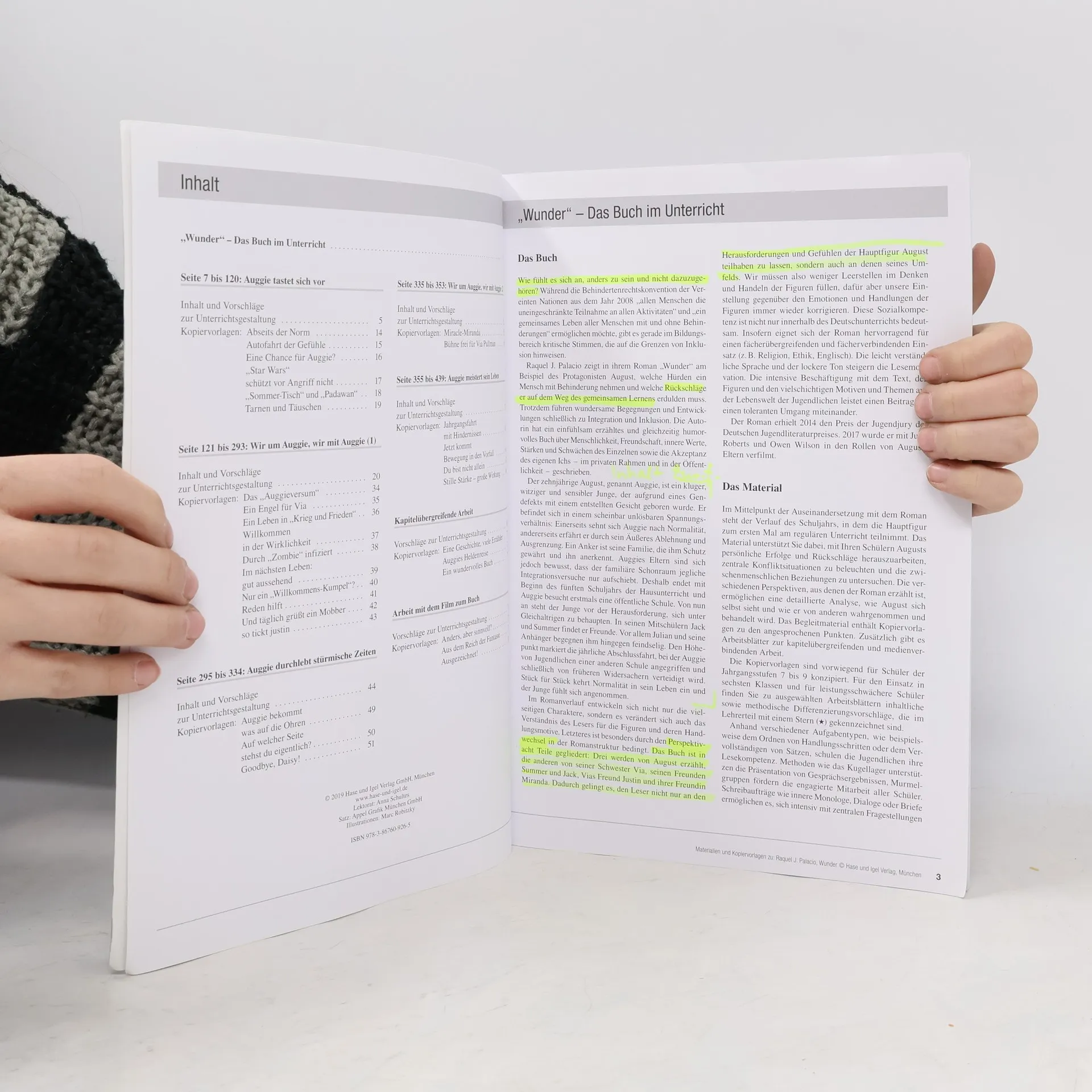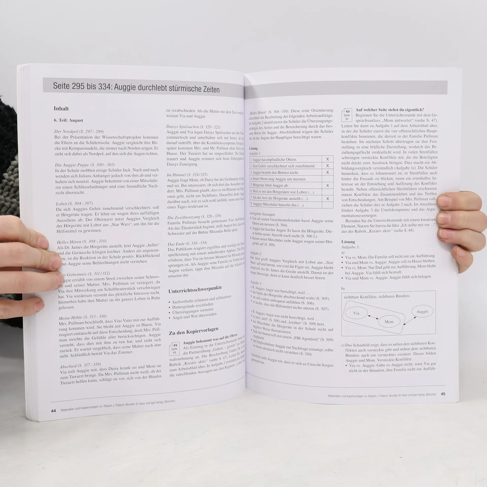 Raquel J. Palacio hat mit "Wunder" ein einfühlsam erzähltes und gleichzeitig humorvolles Buch über Menschlichkeit, Freundschaft und innere Werte geschrieben. Das Begleitmaterial unterstützt Sie dabei, mit Ihren Schülern die persönlichen Rückschläge und Erfolge des Protagonisten August herauszuarbeiten, zentrale Konfliktsituationen zu beleuchten und die zwischenmenschlichen Beziehungen zu untersuchen. Es beinhaltet abwechslungsreiche Arbeitsblätter zu Buch und Film, zahlreiche Anregungen zum Schreiben und für Gespräche, kreative Aufträge sowie Ideen zur Differenzierung
