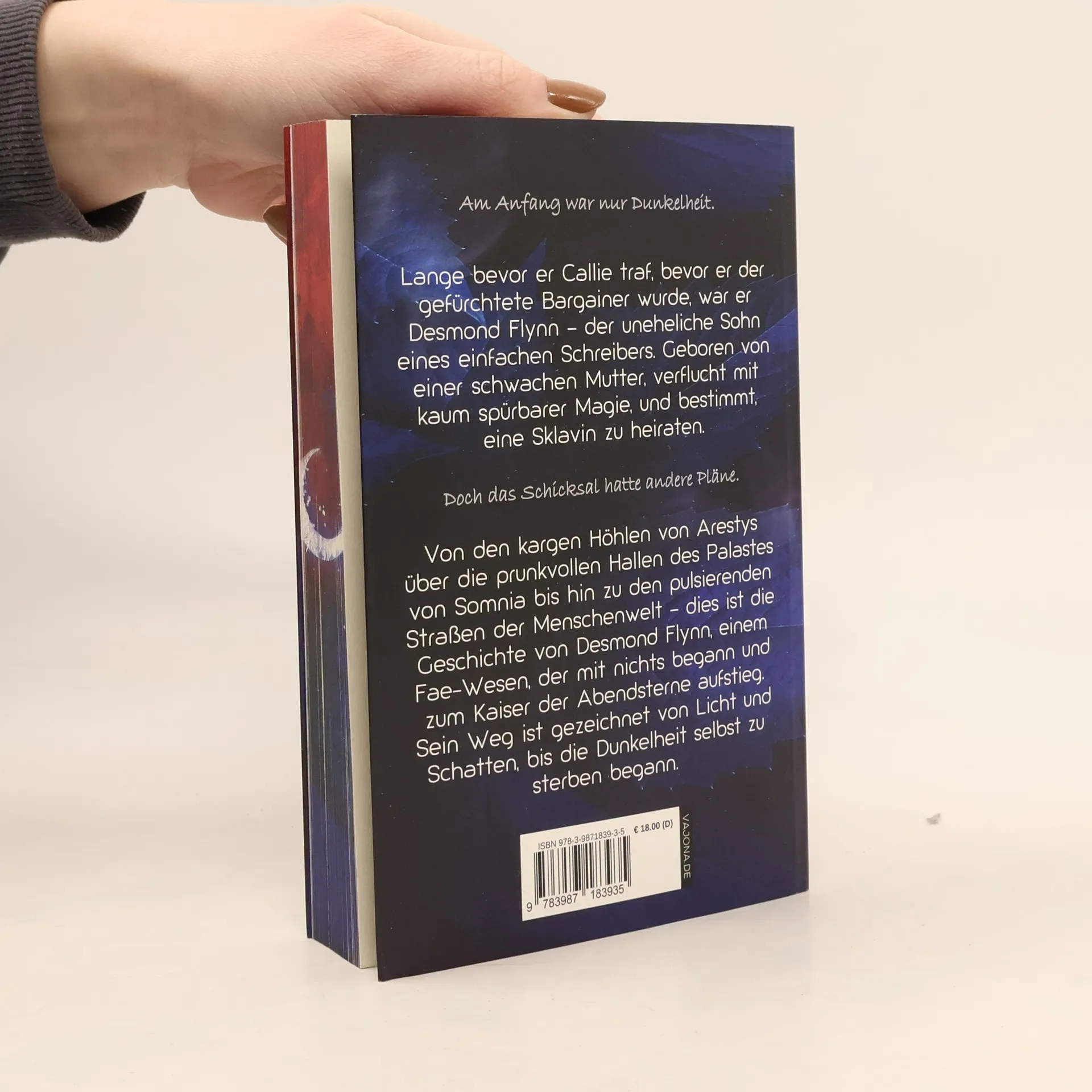 <b>Mit farbigem Buchschnitt - limitiert -</b> Am Anfang war nur Dunkelheit. Lange bevor er Callie traf, bevor er der gefürchtete Bargainer wurde, war er Desmond Flynn – der uneheliche Sohn eines einfachen Schreibers. Geboren von einer schwachen Mutter, verflucht mit kaum spürbarer Magie, und bestimmt, eine Sklavin zu heiraten. Doch das Schicksal hatte andere Pläne. Von den kargen Höhlen von Arestys über die prunkvollen Hallen des Palastes von Somnia bis hin zu den pulsierenden Straßen der Menschenwelt – dies ist die Geschichte von Desmond Flynn, einem Feenwesen, das mit nichts begann und zum Herrscher der Abendsterne aufstieg. Sein Weg gezeichnet von Licht und Schatten, bis die Dunkelheit selbst zu sterben begann.