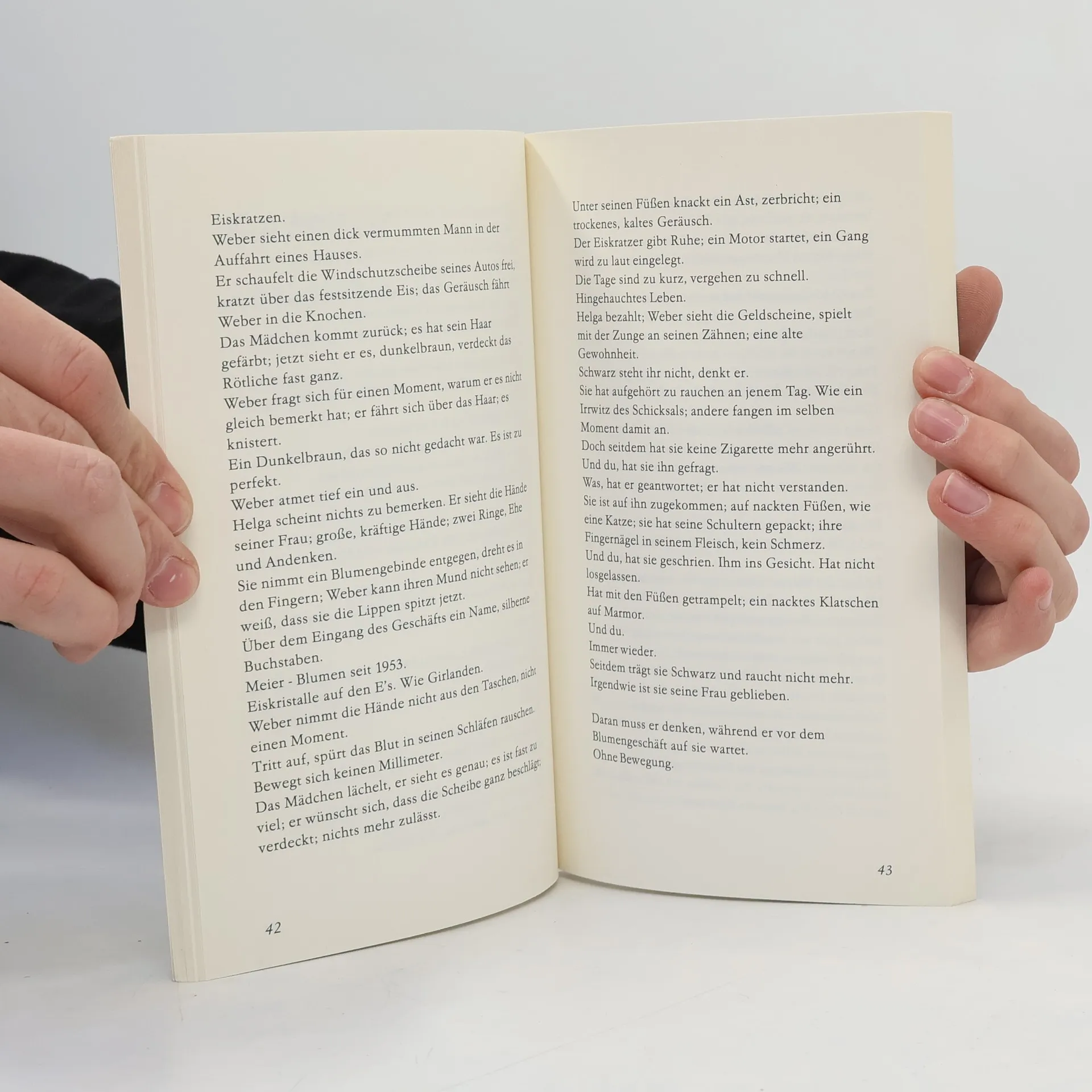 In der Titelgeschichte des Erzählbandes wird das Interesse des Autors an den Brüchen der Charaktere deutlich. Ein Ausflug wird zur Analyse von Beziehungen, eine Einladung verläuft unerwartet und eine junge Frau nutzt ihren Beruf, um gegen ihren Vater zu kämpfen. Alle Figuren suchen nach dem Sinn ihres Lebens.