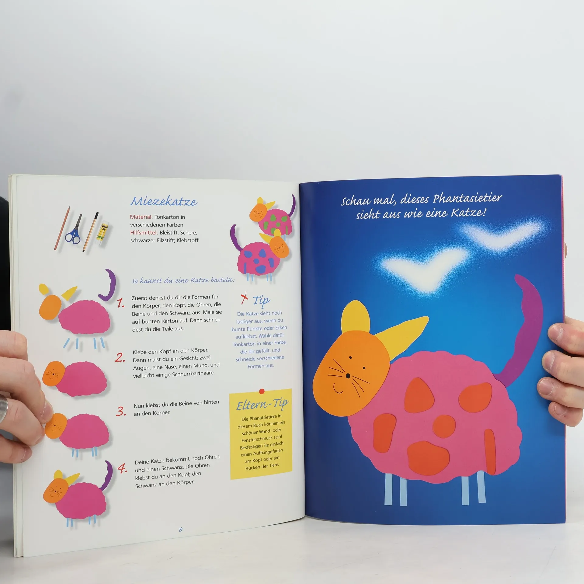 Ganz einfach nachvollziehbare Anleitungen zum Basteln von Fantasietieren aus bunten Bastelpapieren und -pappen, die die Grundlage für lustige und gesellige Lege-, Würfel- und Fühlspiele bilden. Mit Tips für Eltern und Spielregeln.
