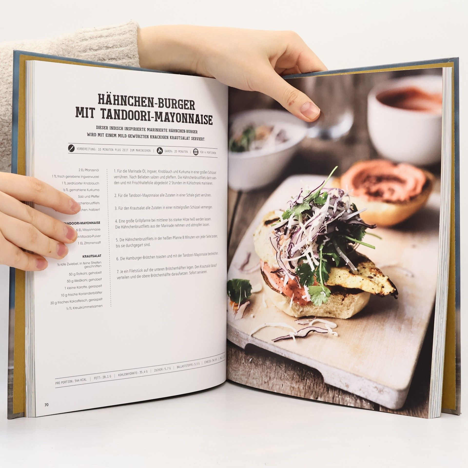 Werden Sie zum Burger-Meister! • Mehr als 80 geniale Rezepte für Burger, Buns, Saucen & Beilagen: von zeitlosen Klassikern bis zu opulenten Gourmet-Kreationen - mit und ohne Fleisch, aber immer mit besten Zutaten • Kompakte Einleitung mit vielen wertvollen Tipps für den perfekten Burger • Detaillierte Schritt-für-Schritt-Anleitungen sorgen für optimales Gelingen, brillante Farbfotos machen Lust aufs selbst gemachte Burger-Glück Handgemachter Hochgenuss: Freuen Sie sich auf mehr als 80 geniale Rezepte für Burger, Buns, Saucen & Beilagen - von zeitlosen Klassikern bis zu opulenten Gourmet-Kreationen. Ob mit Fleisch, Geflügel, Fisch, veggie oder vegan: Mit unseren frischen und kreativen Rezeptideen, gelingsicheren Schritt-für-Schritt-Anleitungen und Basics zur Zubereitung werden Sie garantiert zum Burger-Meister! Finden Sie Ihre persönlichen Rezept-Highlights: Vom saftigen Steakehouse-Burger über würzige Lamm-Burger mit Auberginen und exotische Chili-Burger mit Pak Choi bis zu raffinierten fleischfreien Variationen mit Quinoa, Polenta, Tofu oder Jackfrucht ist für jeden Geschmack der richtige Prachtkerl dabei. Dazu gibt es hausgemachte Salsa oder Mayonnaise, rauchige Paprika-Süßkartoffel-Chips, knusprige Zwiebelringe oder pikante Thai-Pommes-frites - fertig ist der perfekte Burger!