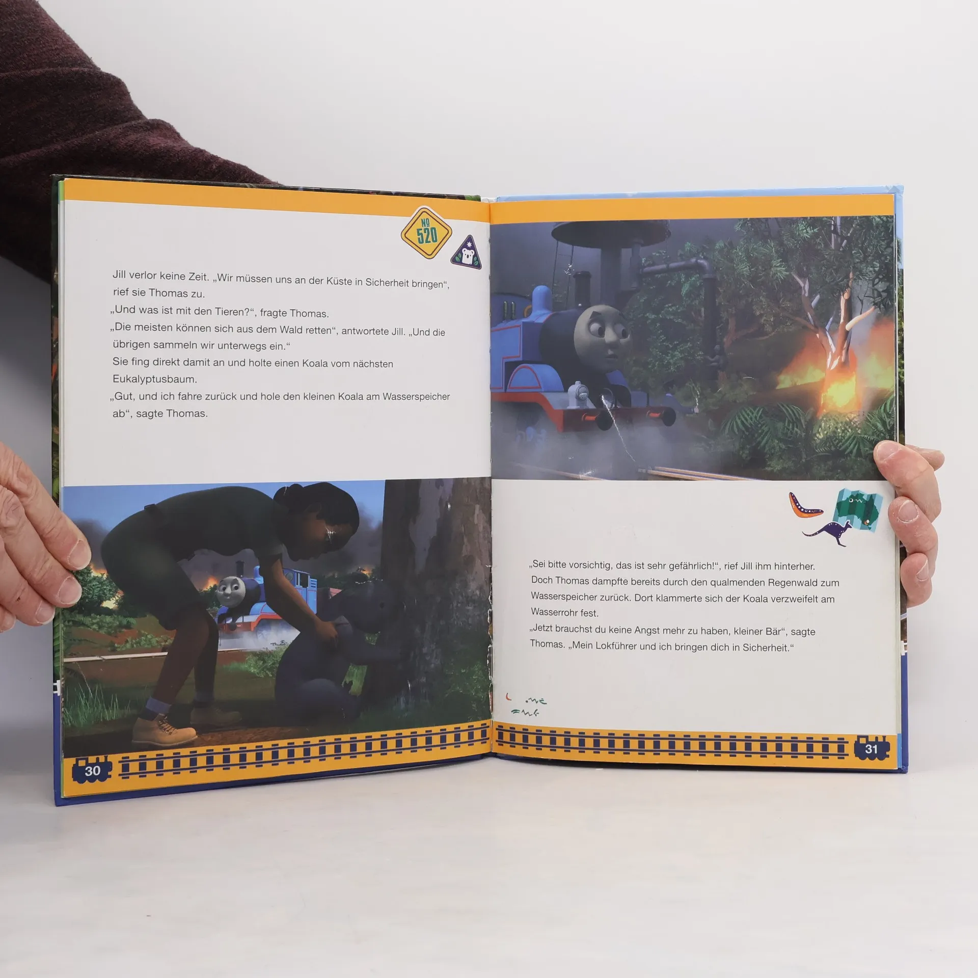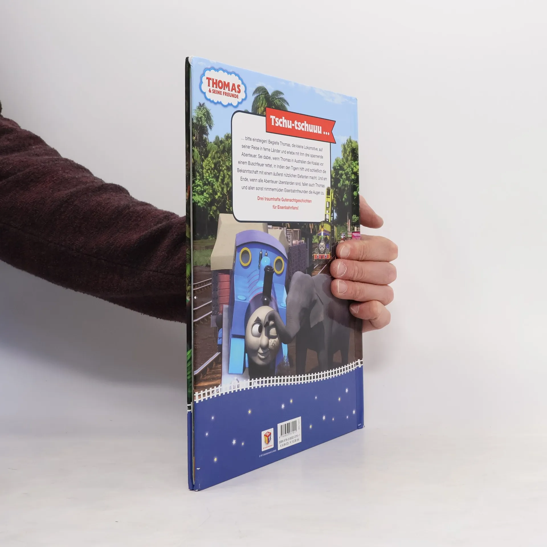 Tschu-tschuuu … … bitte einsteigen! Begleite Thomas, die kleine Lokomotive, auf seiner Reise in ferne Länder und erlebe mit ihm drei spannende Abenteuer. Sei dabei, wenn Thomas in Australien die Koalas vor einem Buschfeuer rettet, in Indien den Tigern hilft und schließlich die Bekanntschaft mit einem äußerst nützlichen Elefanten macht. Und am Ende, wenn alle Abenteuer überstanden sind, fallen auch Thomas und allen sonst nimmermüden Eisenbahnfreunden die Augen zu. Drei traumhafte Gutenachtgeschichten für Eisenbahnfans!